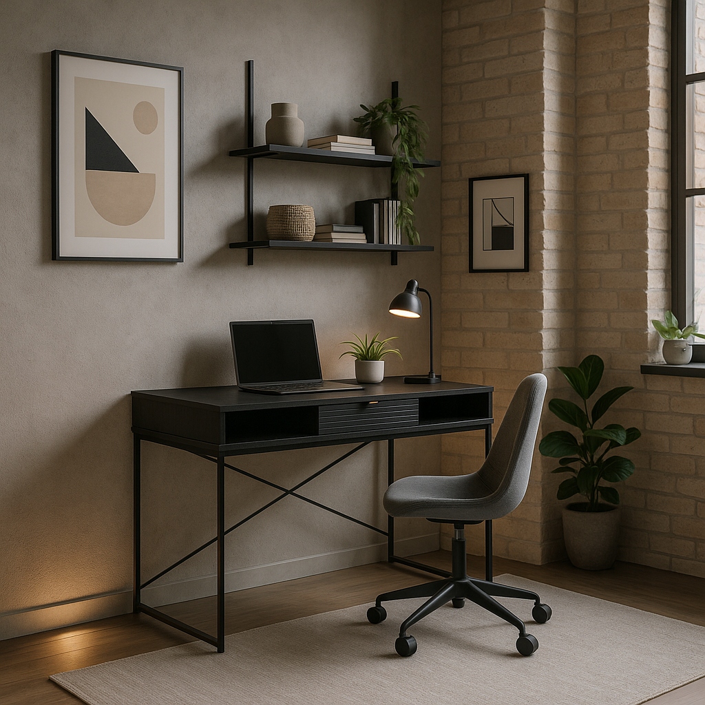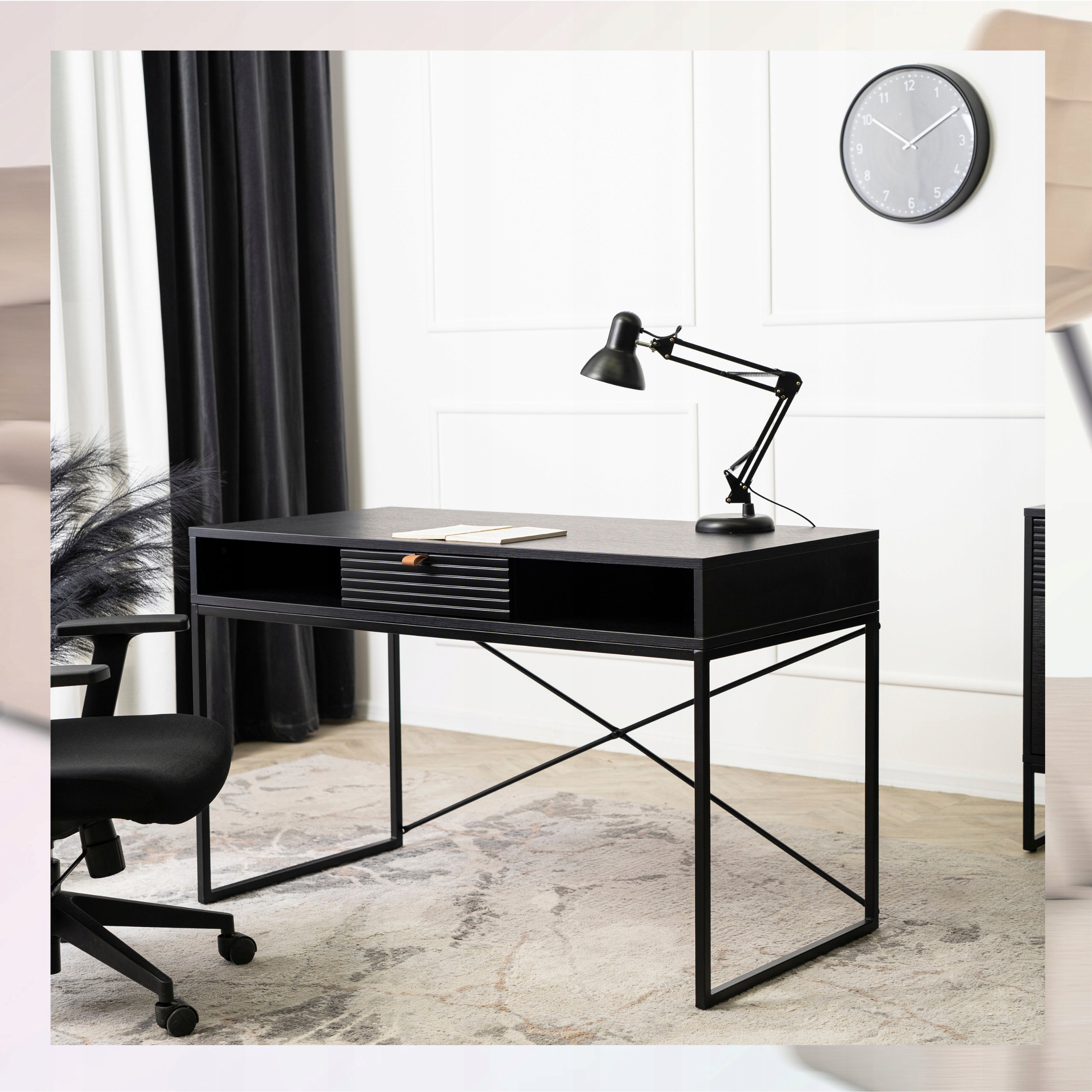 ⭐ Podstawa biurka to metal malowany na czarno z matowym wykończeniem.