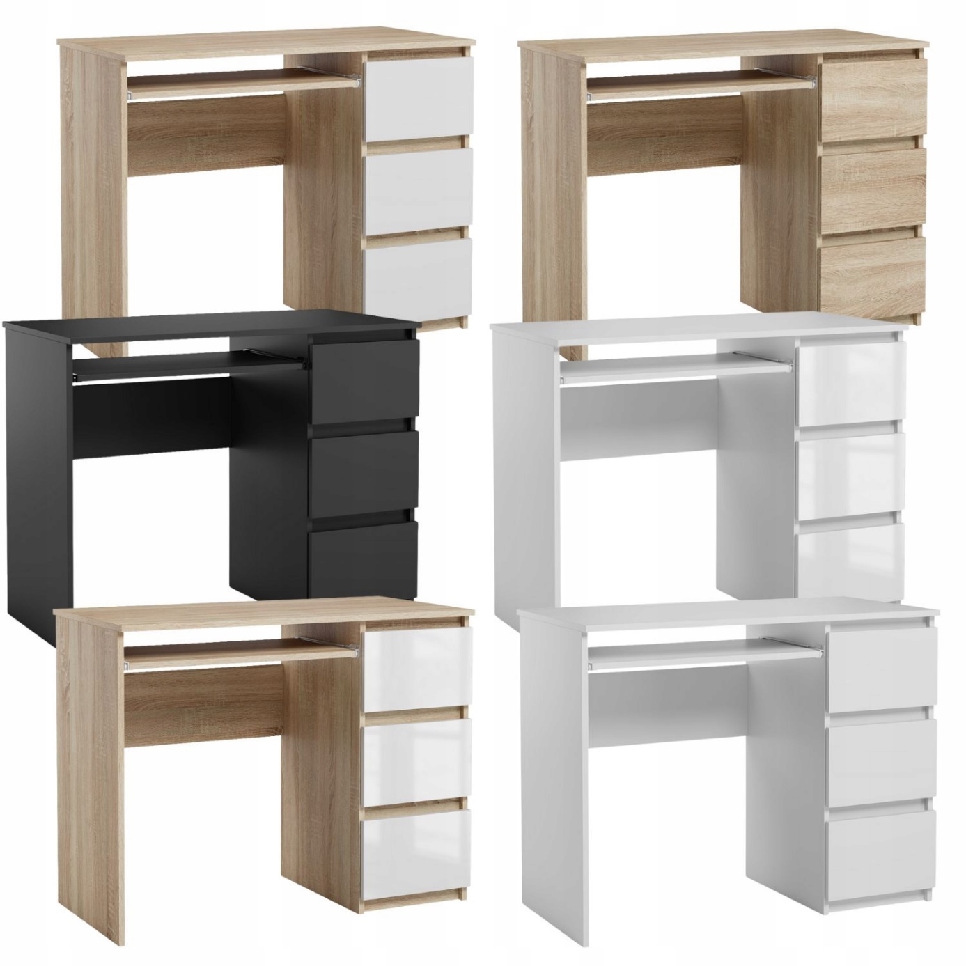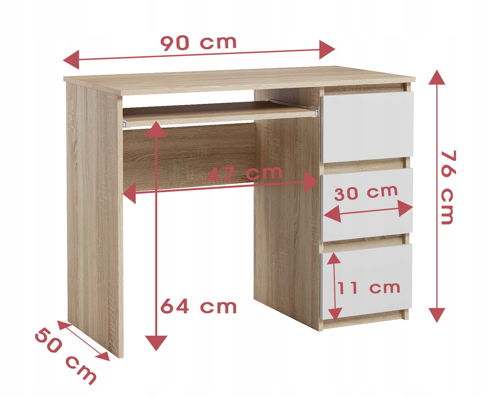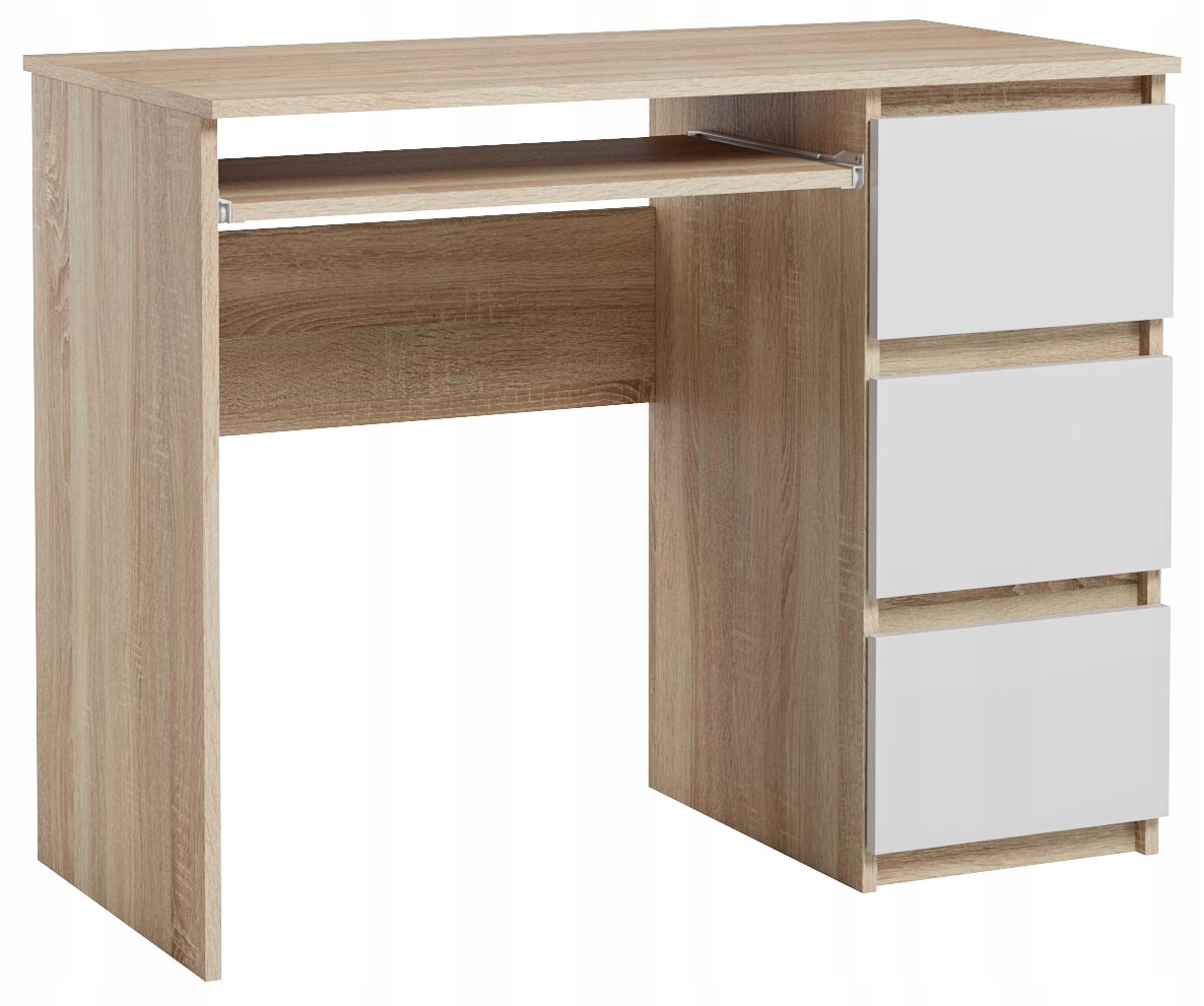 Biurko komputerowe Heini Dąb Sonoma Biały Mat 3 Szuflady