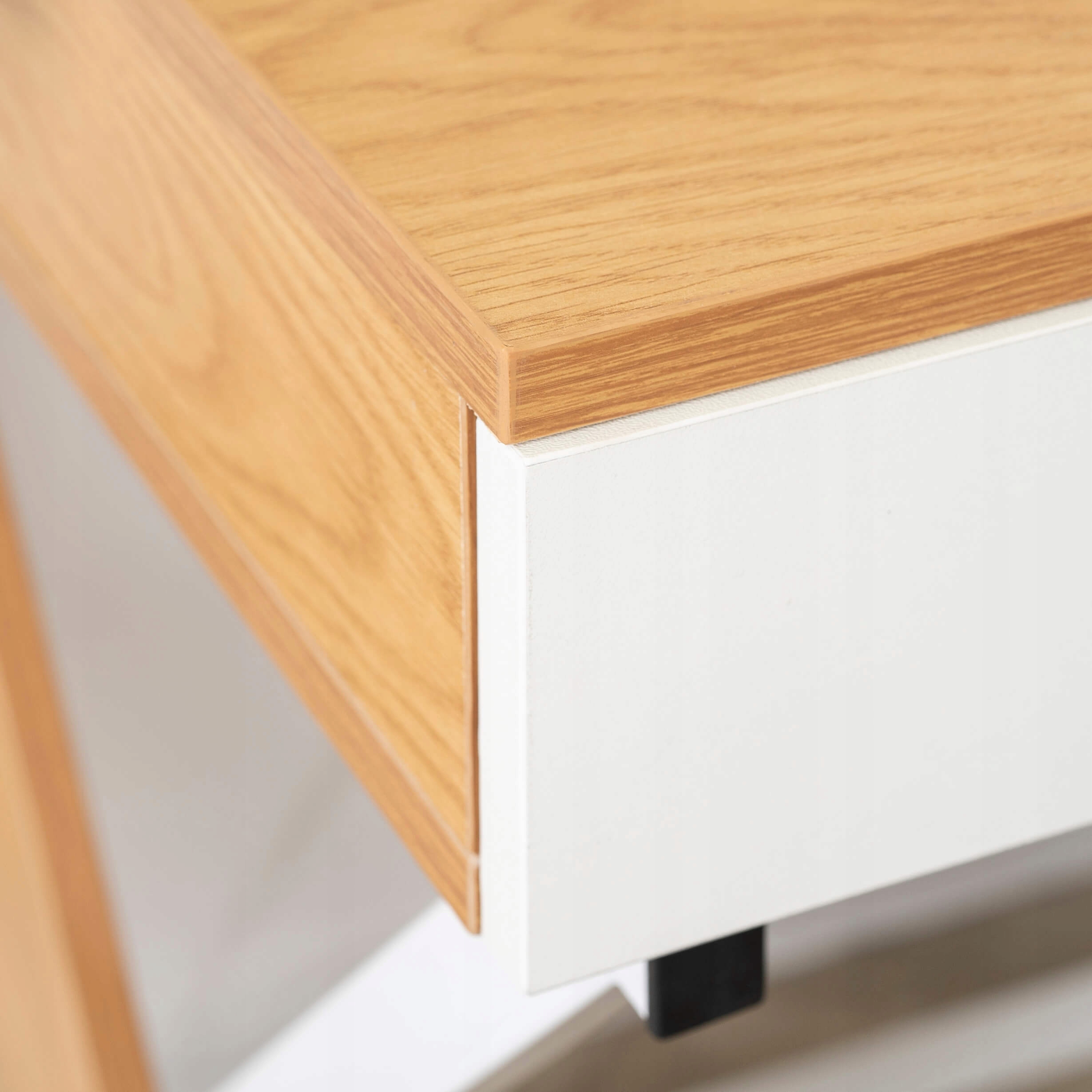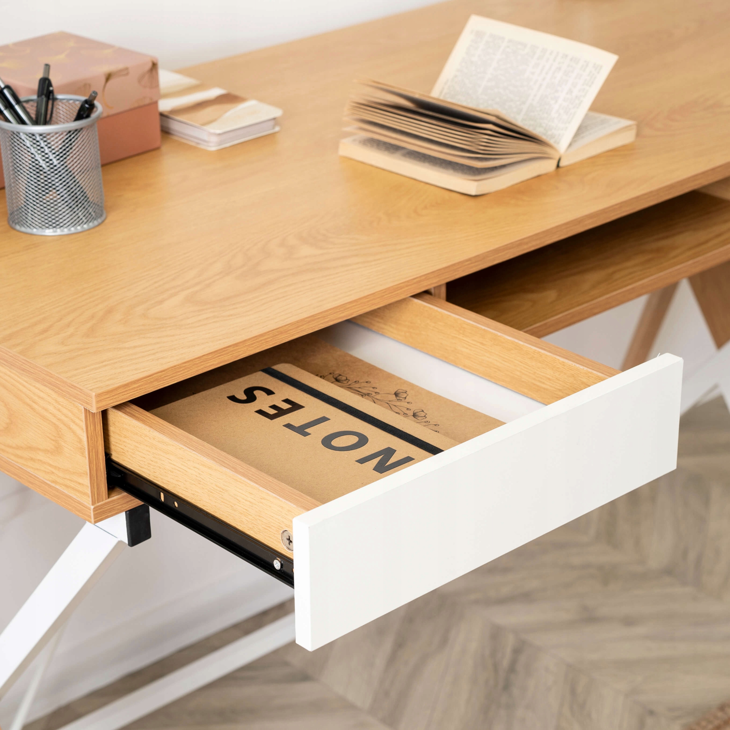Biurko Skandynawskie Biurowe Z Szufladami Prostokątne Białe Dąb Złoty REA ⭐⭐⭐⭐⭐