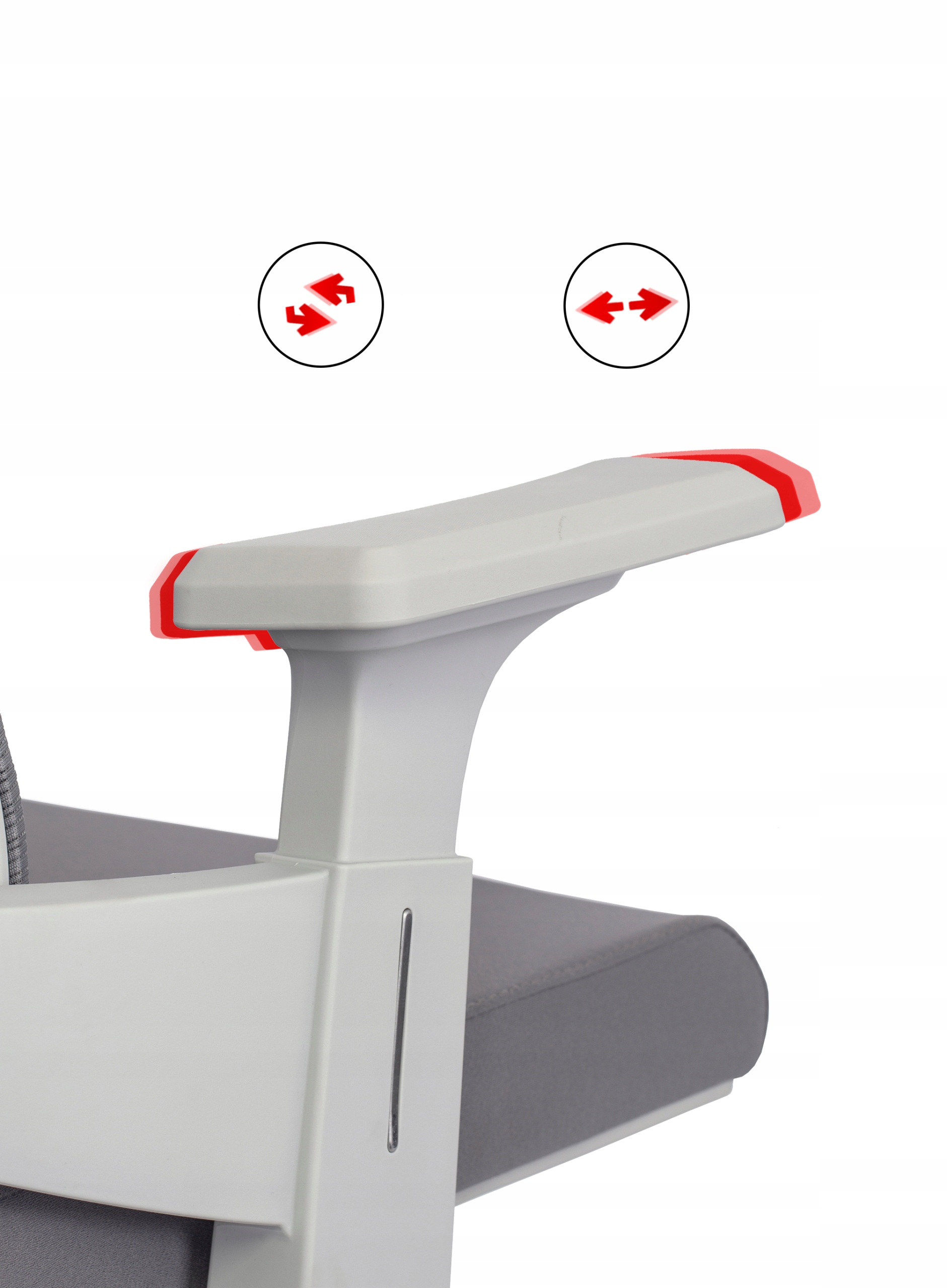 Kolejnym niezwykle ważnym atutem dobrego fotela jest podpórka lędźwiowa pod plecy. W tym przypadku oparcie wyposażone zostało w specjalny punkt podparcia lędźwi z możliwością aż 4-stopniowej regulacji głębokości, aby zapewnić wygodę oraz prawidłową linię kręgosłupa podczas siedzenia. Wystarczy chwycić dłońmi za gałki i podnieść do góry, do najbardziej odpowiedniej dla siebie pozycji.