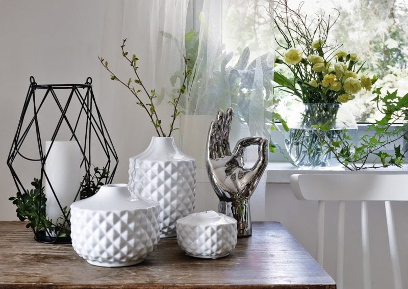 Powierzchnię wazonów czy świeczników mogą zdobić ryflowania lub efektowne przewężenia. Jeśli chodzi o materiał wykonania, najlepiej zda tutaj egzamin ceramika i transparentne szkło.