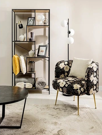 Stylowy fotel Cloe spodoba się niejednej pani. Jest na tyle kompaktowy, że nie przytłoczy pomieszczenia, a deseń w kwiaty piwonii wpadnie w oko zwolenniczkom florystycznych motywów. Dzięki eleganckiej tapicerce i smukłym, złocistym nóżkom znakomicie wpisze się w estetykę glamour. Przeglądanie czasopisma, telefoniczne plotki z przyjaciółką czy poranna kawa w takim fotelu będą wyjątkowo przyjemne.