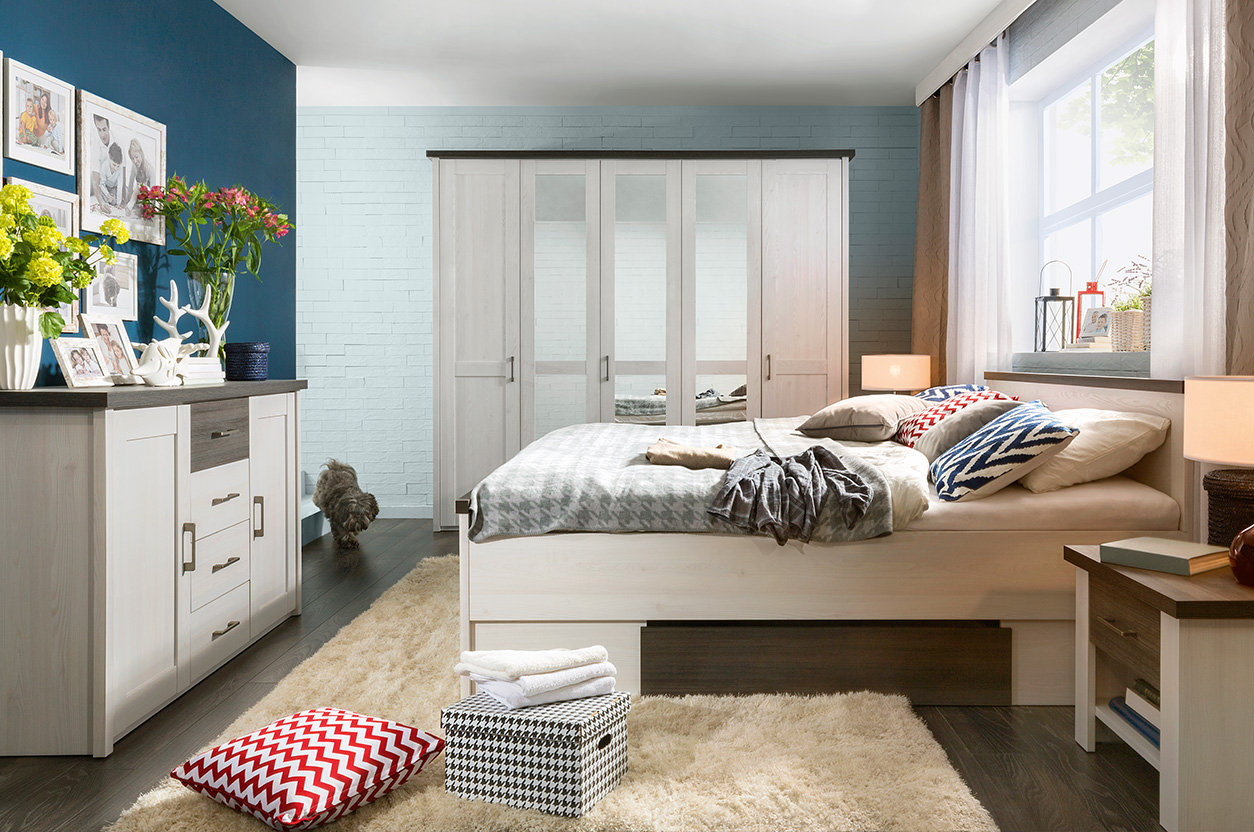 Z czego to wynika? Przede wszystkim z funkcjonalności oraz komfortu użytkowania. Zarówno ubrania, jak i poszczególne drobiazgi przechowywane w garderobie mają różną wielkość. Dobrze zatem tak dobrać szuflady oraz półki, aby dla każdego elementu znalazło się przypisane mu miejsce. Czytelny układ, dużo schowków – to rozwiązanie idealne do każdej garderoby. W koncepcję sypialni łączonej z garderobą świetnie wpisuje się np. nasza kolekcja Raflo – szafy różnego typu oraz wygodne łóżko dają wiele ciekawych możliwości aranżacyjnych.