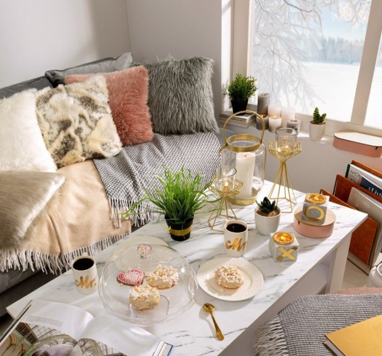 Więcej o wykorzystaniu koców i poduszek w aranżacji przeczytasz tutaj: „Zaproś do domu zimowe tekstylia”.