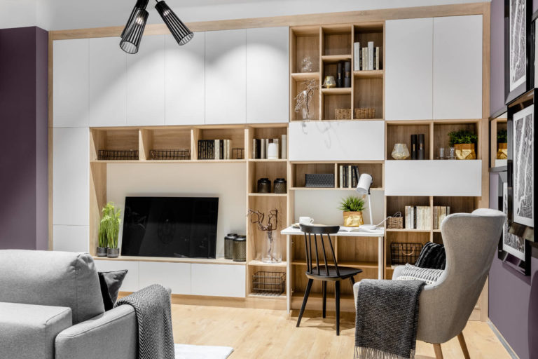 Jeśli również się tego obawiasz – mamy dobre wiadomości. Intensywne kolory możesz wykorzystać w każdym pomieszczeniu, nawet niewielkim. Wystarczy, że zamiast całej ściany pomalujesz na amarantowo czy trawiasto jedynie jej część, np. pionowy, poziomy lub ukośny pas.