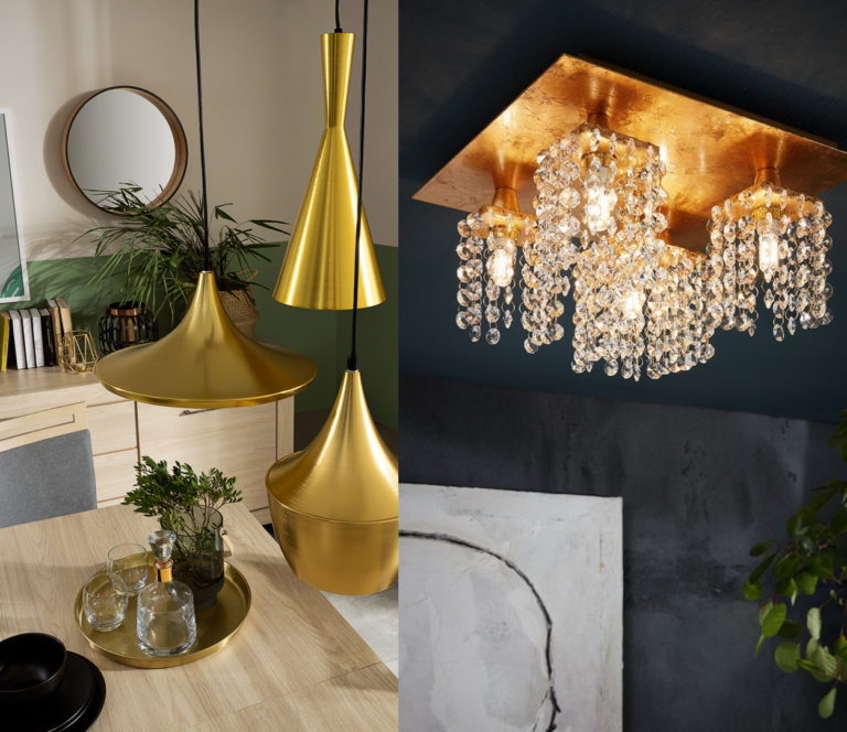 Jeżeli do wystroju włączysz oświetlenie o odmiennym designie, wnętrze będzie prezentowało się bardziej bogato. Dla przykładu: lampa wisząca o nowoczesnej, odrobinę surowej formie stworzy udany duet z lampą podłogową o klasycznej linii i pięknym miedzianym połysku.