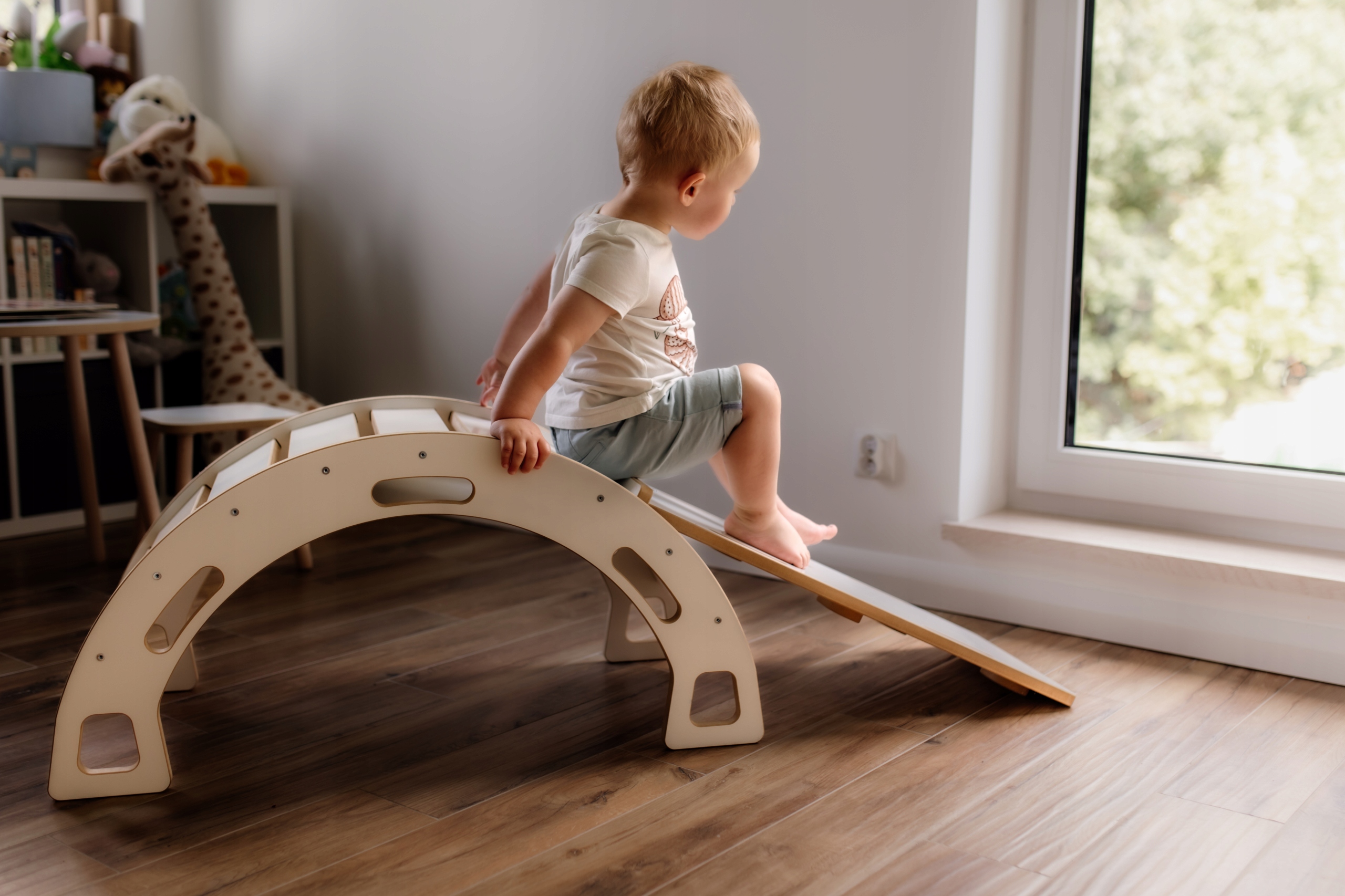 Istnieje możliwość dokupienia dodatkowych elementów, takich jak poduszka, zjeżdżalnia ze ścianką wspinaczkową lub blat, które mogą być łatwo zamontowane do bujaka. Dzięki nim, zabawa staje się jeszcze bardziej interesująca i różnorodna, rozwijając jednocześnie zdolności ruchowe dziecka.