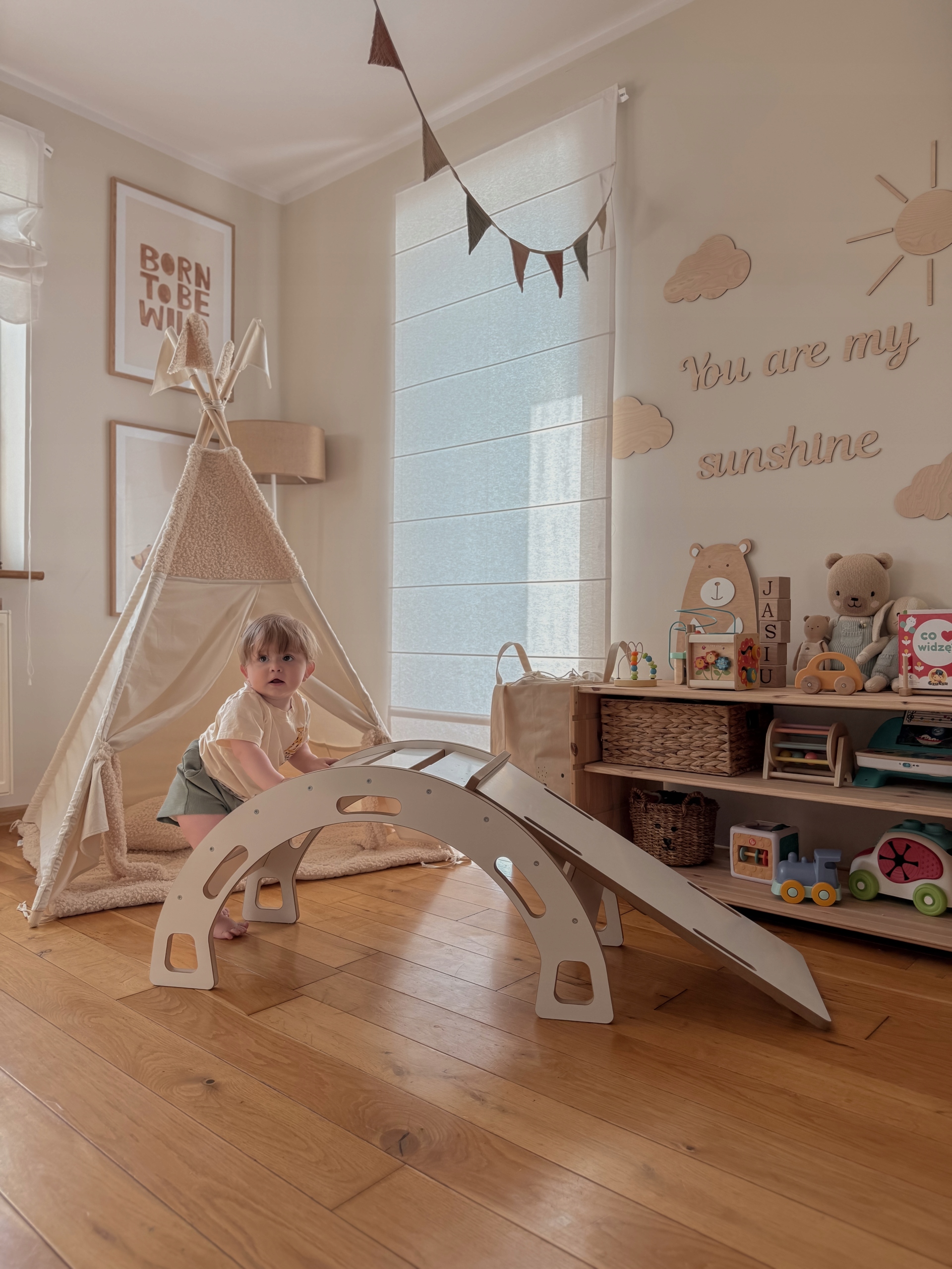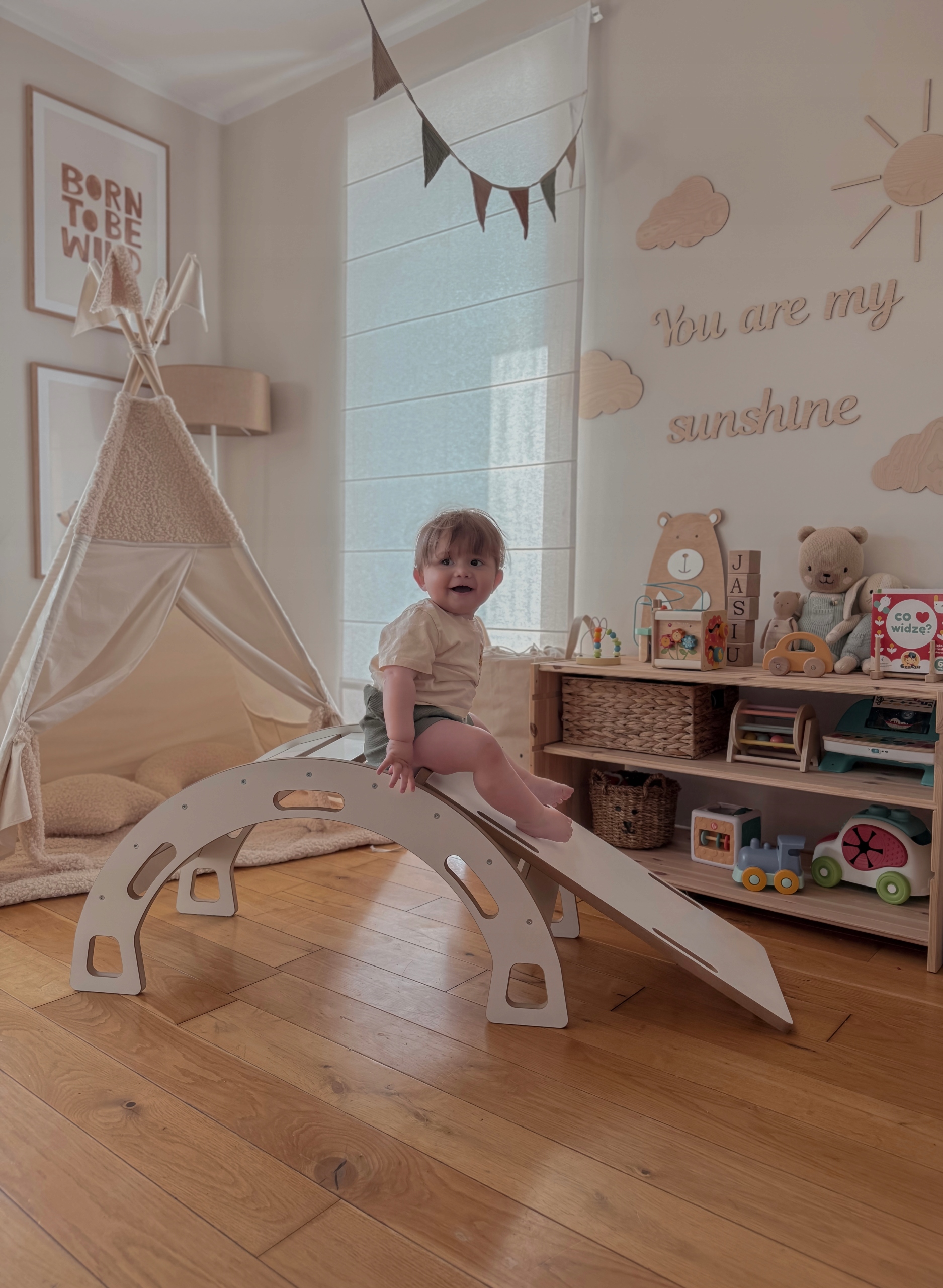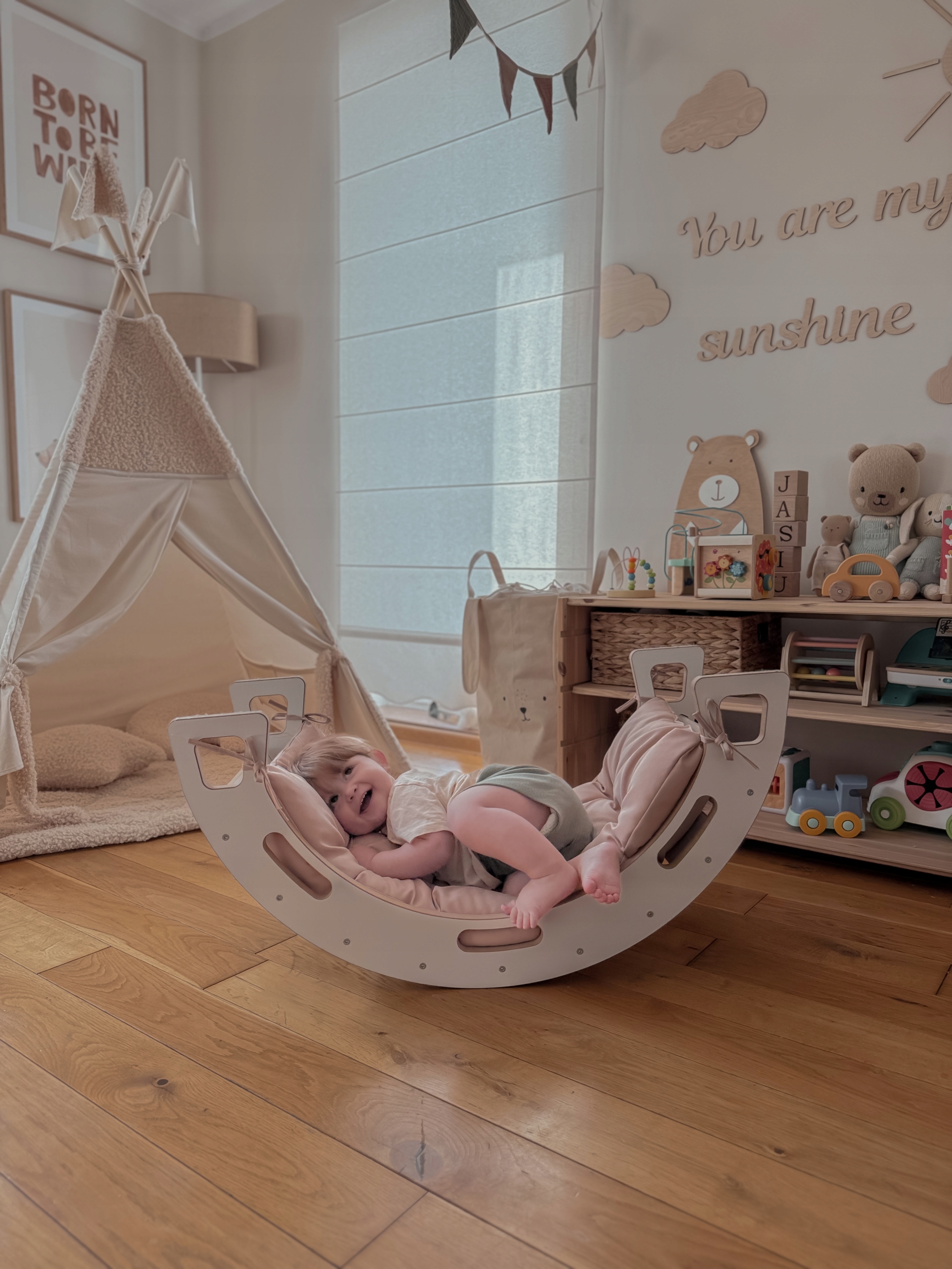 Bujak dla dziecka w kolorze białym ze zjeżdżalnią i ścianką wspinaczkową oraz poduszką to niezwykła zabawka, która dostarczy mnóstwo radości oraz wspomoże rozwój malucha w duchu metody Montessori. Ten fajny bujak Montessori jest nie tylko doskonałym narzędziem do zabawy, ale również idealnym sposobem na ćwiczenie równowagi, koordynacji oraz rozwijanie zdolności motorycznych dziecka.