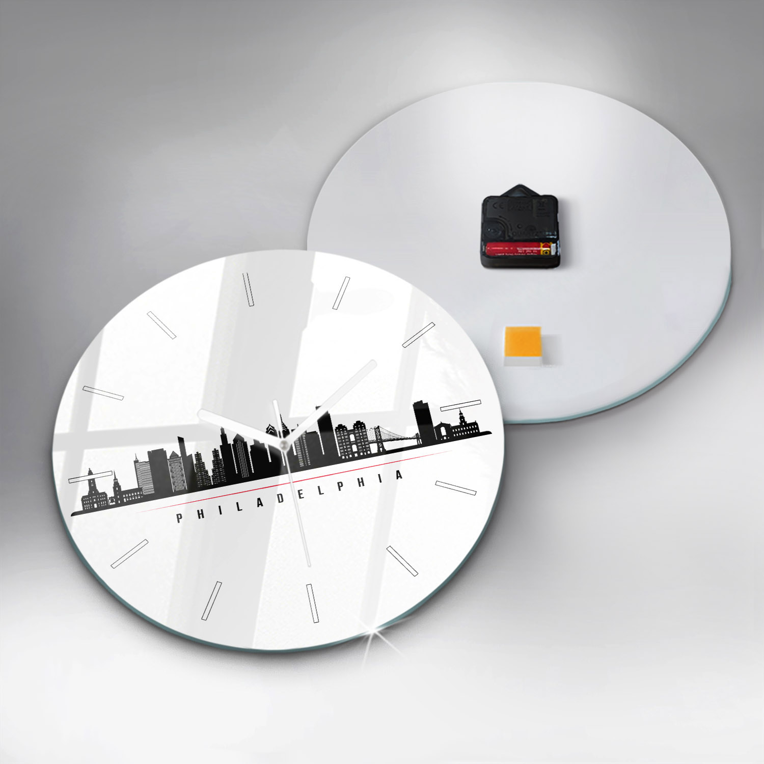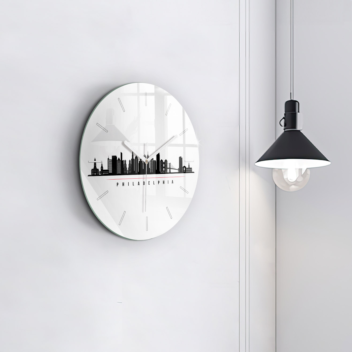 Cichy Zegar Dekoracyjny ścienny Ilustracja Philadelphia fi30