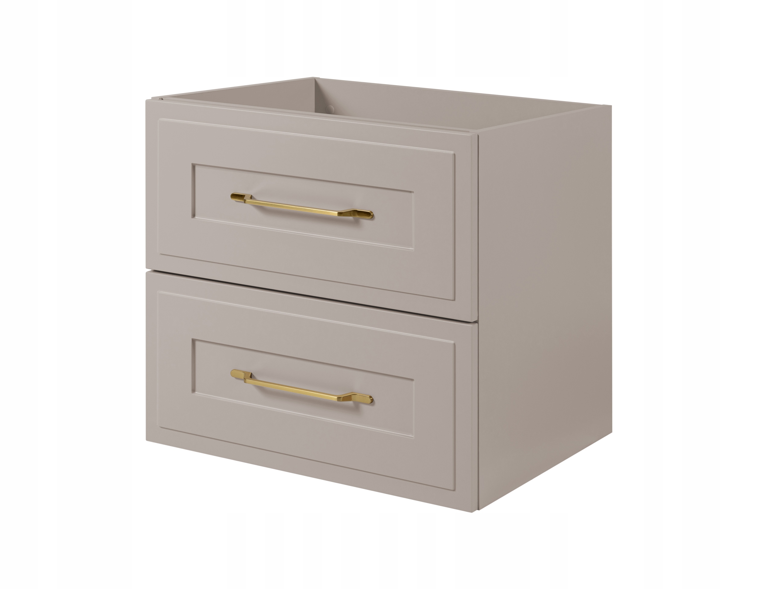 Subtelne kolory, takie jak kaszmir, ciepły dąb craft złoty czy elegancki czarny, doskonale wpisują się w różne aranżacje wnętrz, dodając im wyjątkowego charakteru. Stylowa, szeroka ramka na frontach podkreśla nowoczesny wygląd szafek, a metalowe uchwyty w złotym odcieniu nadają im luksusowego wykończenia.