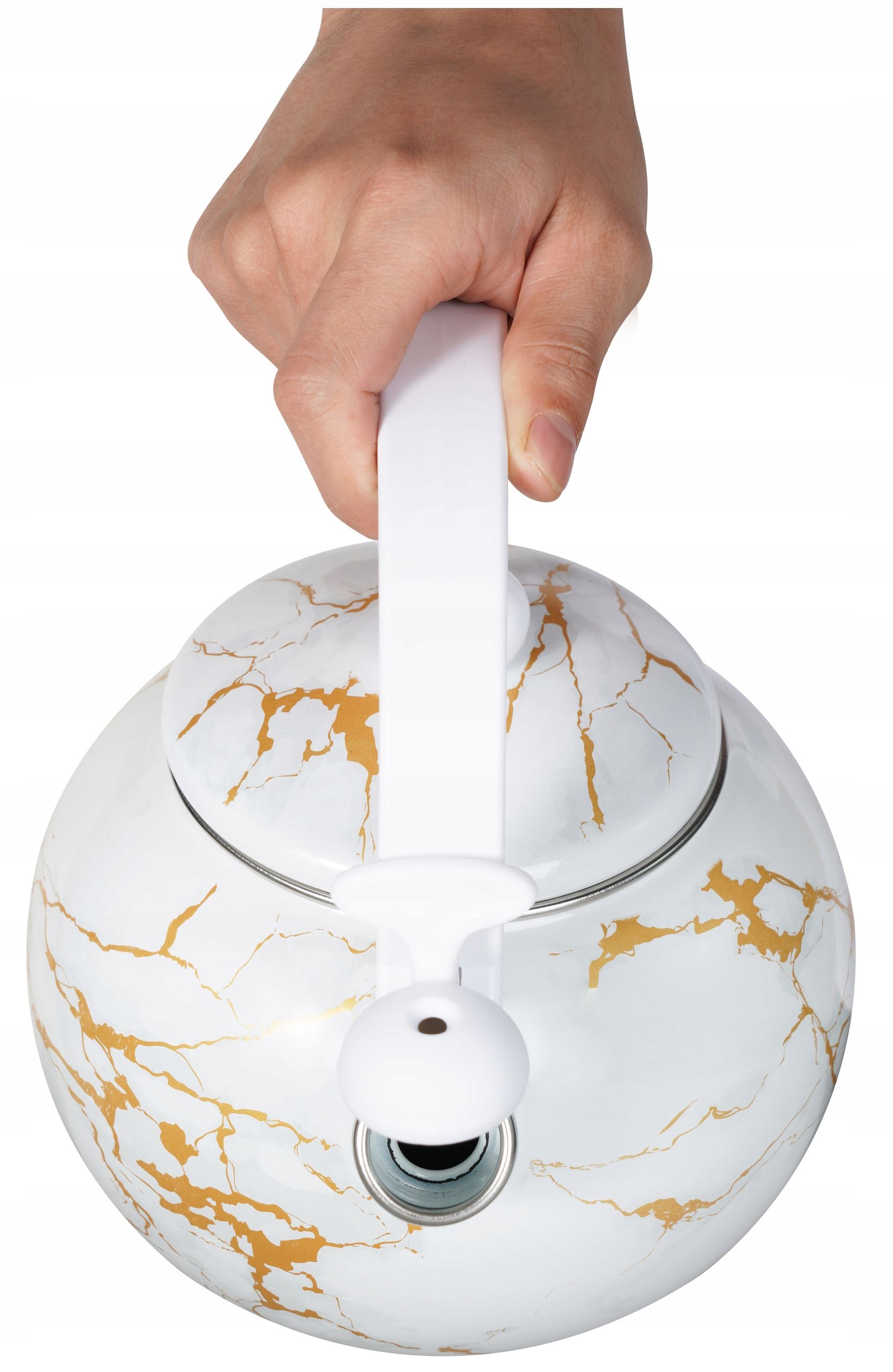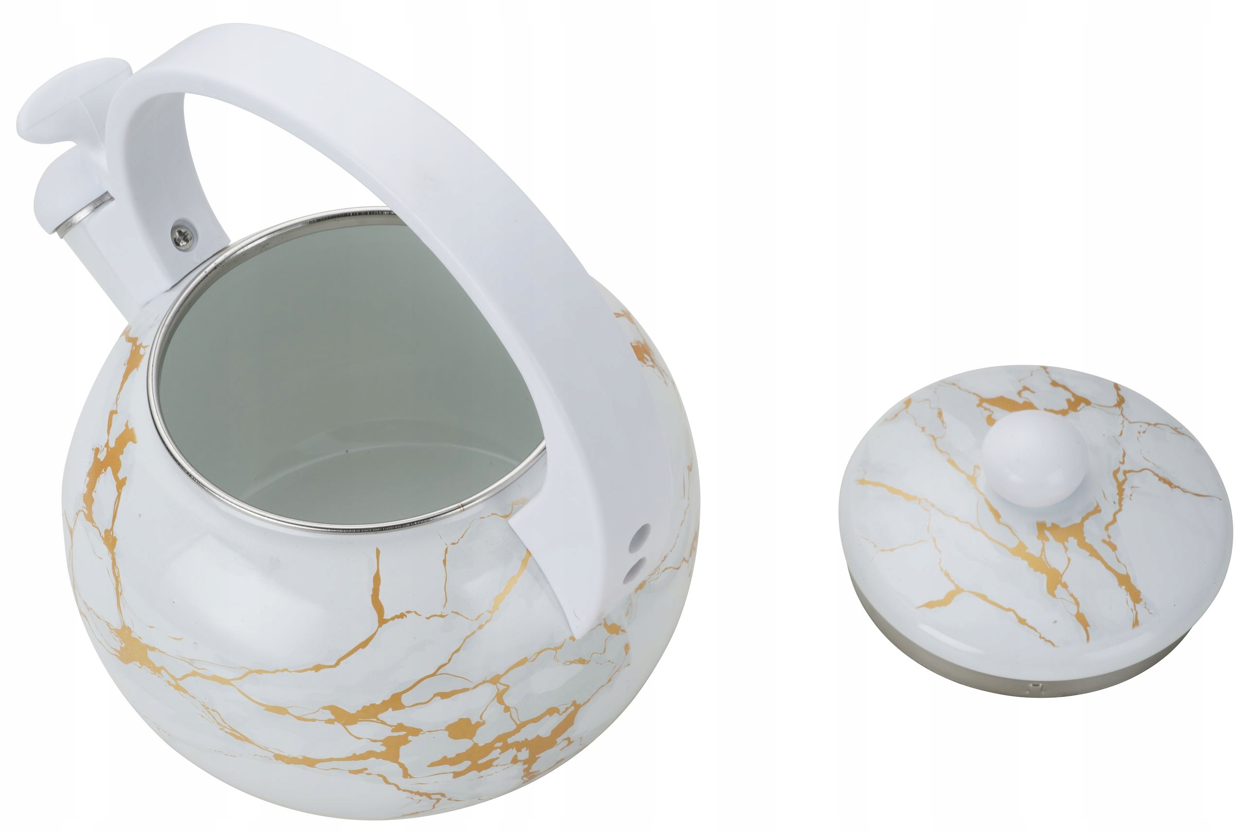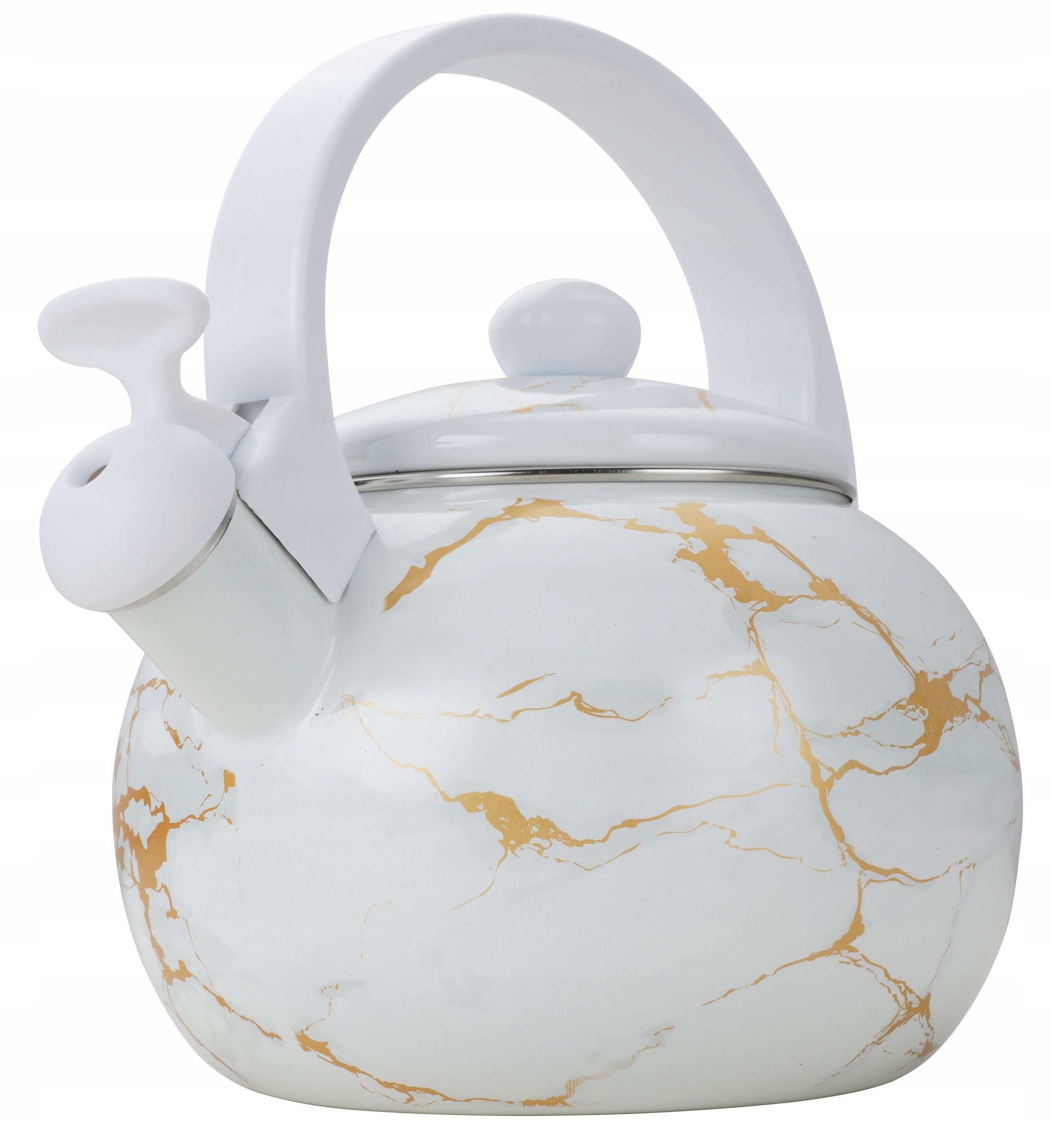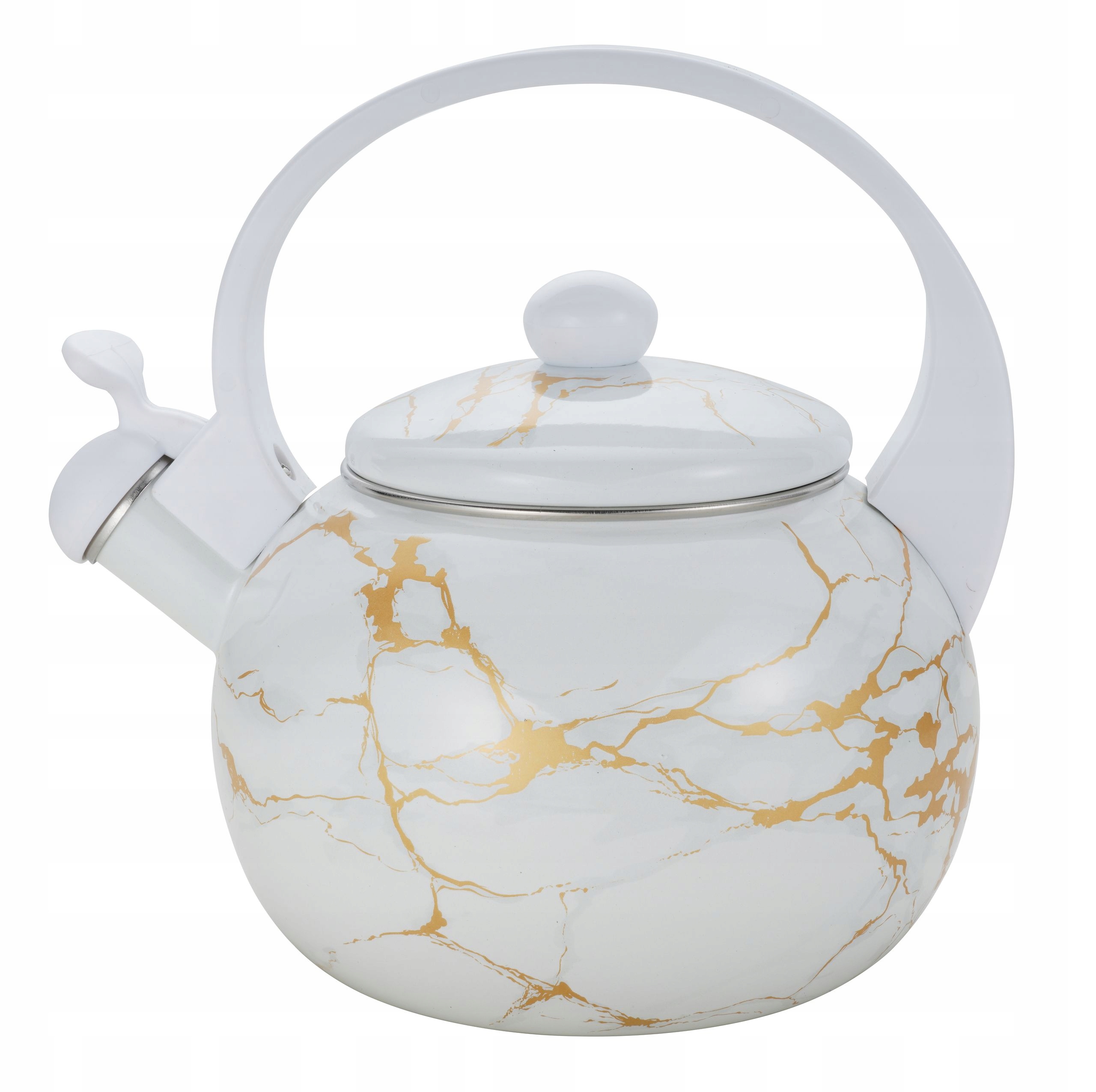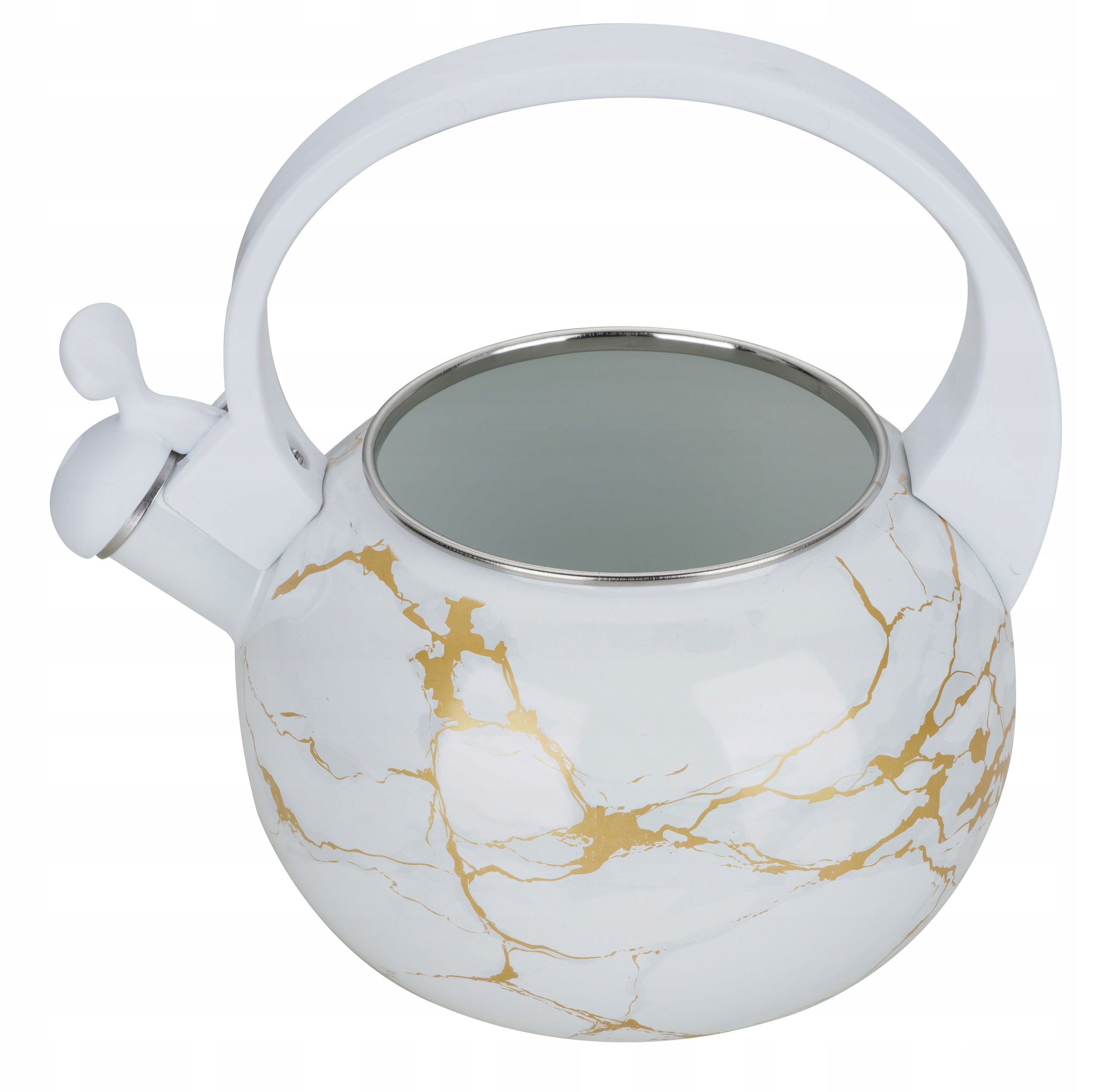 Czajnik Emaliowany z Gwizdkiem 2.2L, Stal Węglowa, Biały