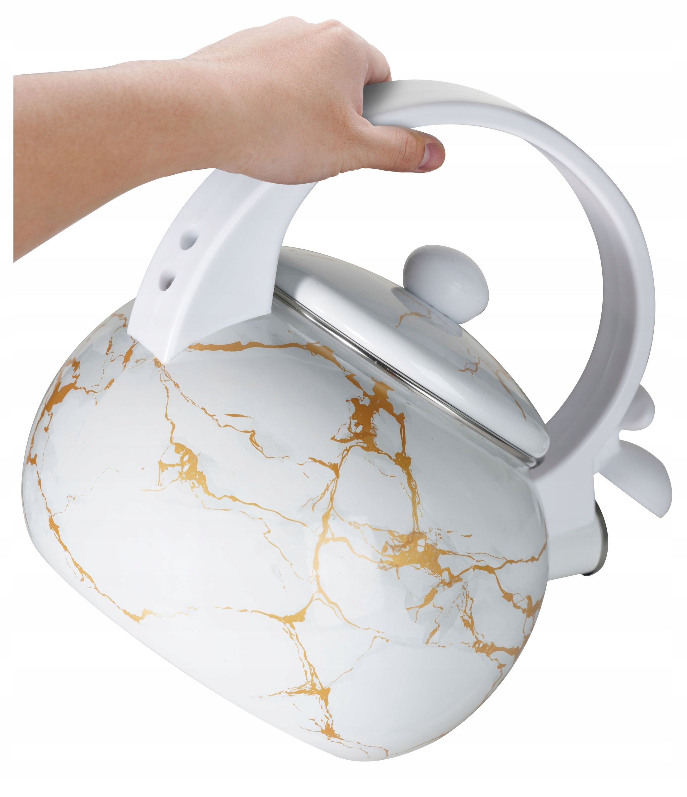 - Czy gwizdek jest łatwy w obsłudze?Tak, gwizdek jest odchylany, co ułatwia nalewanie wody bez konieczności zdejmowania pokrywki.