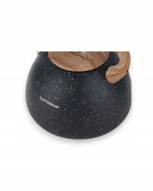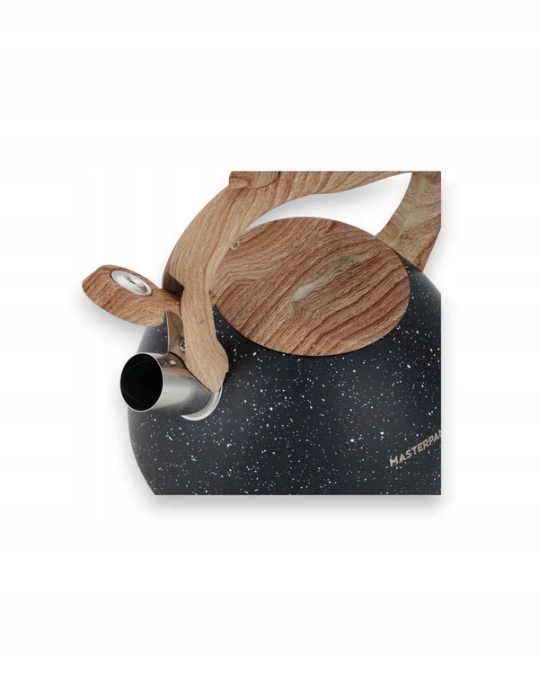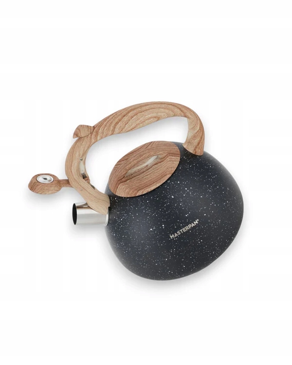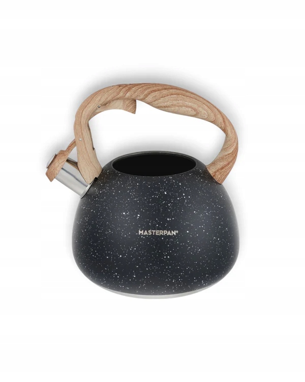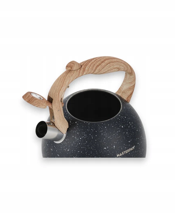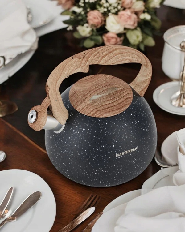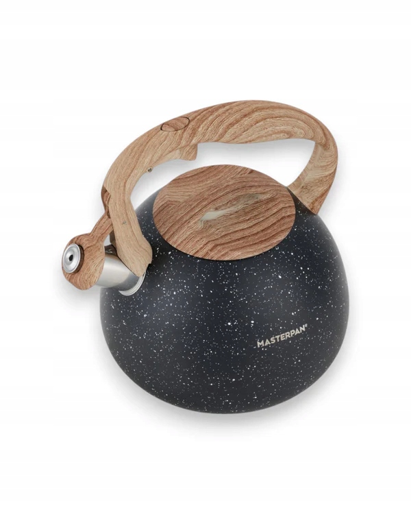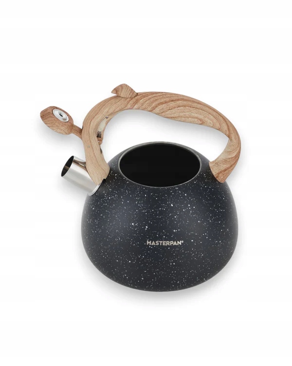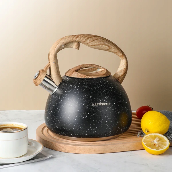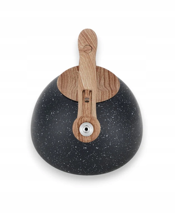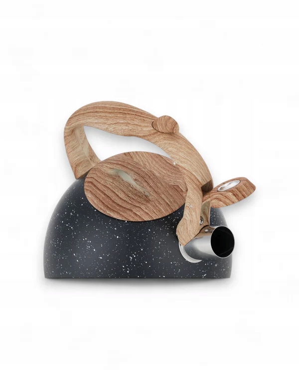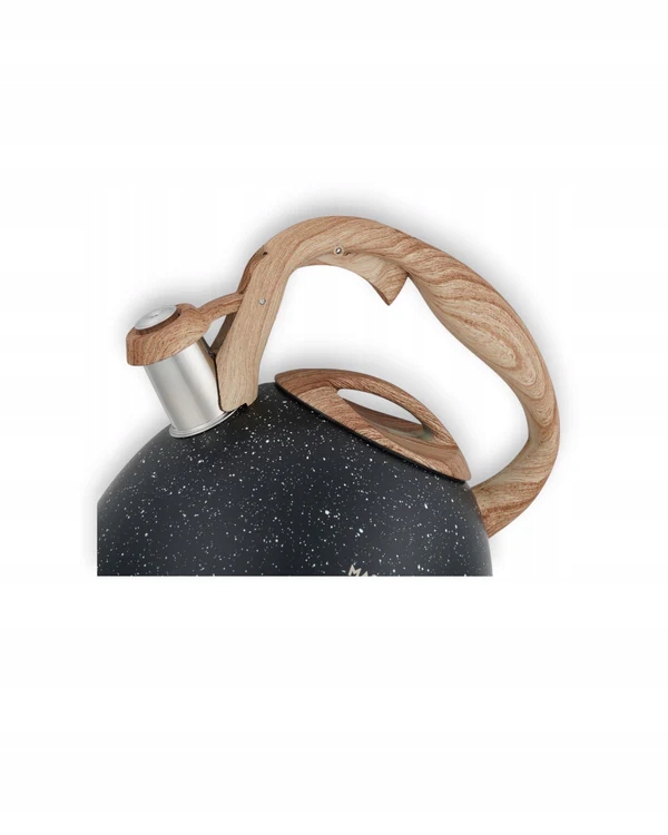 Czajnik Stalowy 2.8L z Gwizdkiem Elegancki Czarny z Drewnianym Uchwytem