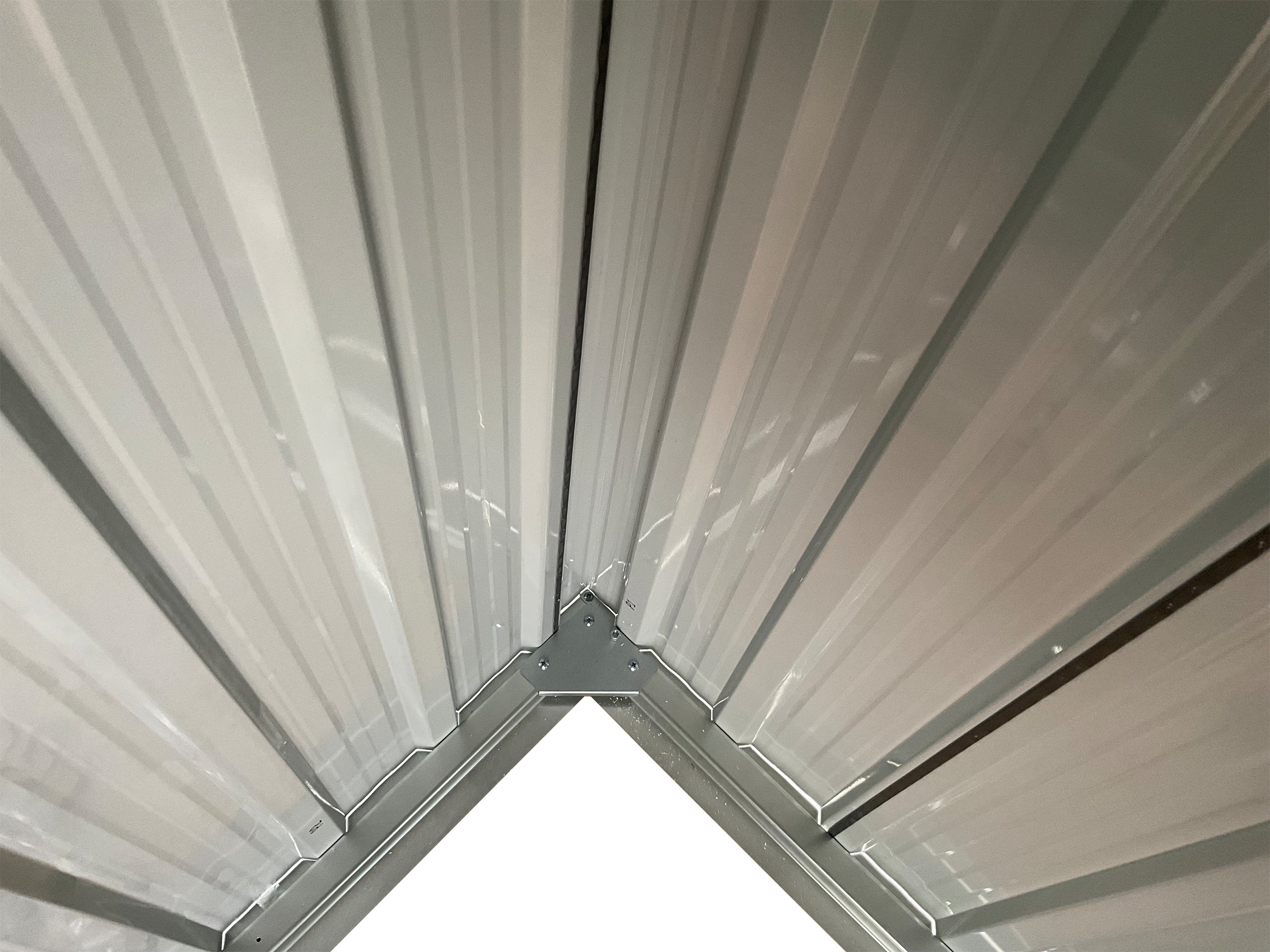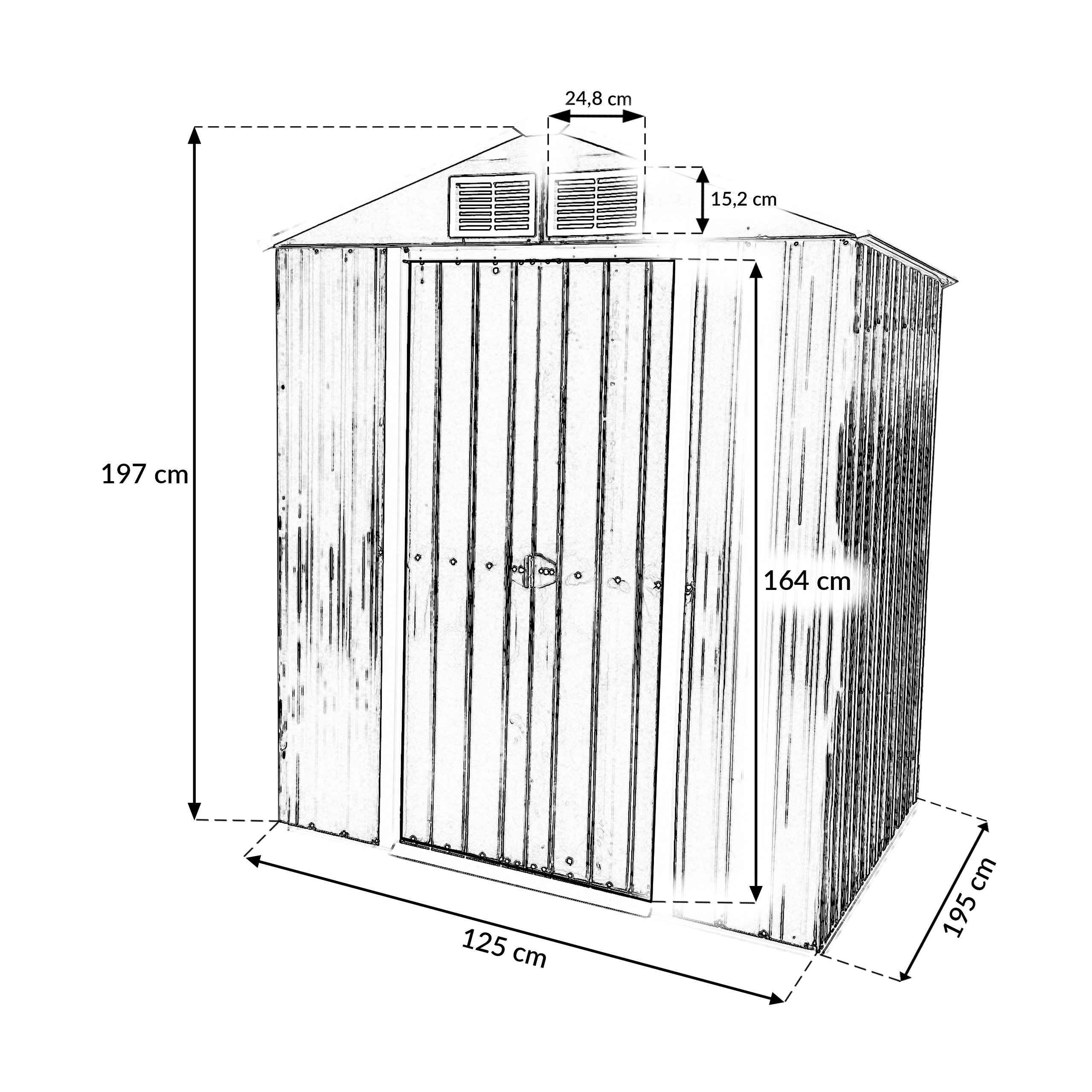 ✅ Materiał: ściany i dach (metalowa płyta o grubości 0,25 mm), rama (ocynkowany metal o grubości 0,6 mm).
