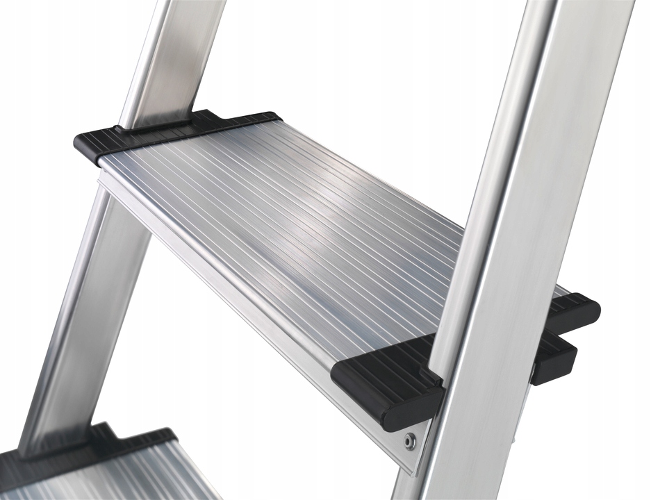 - Aluminiowe stopnie XXL ze struktura antypoślizgową i ekstra szeroką powierzchnią stania