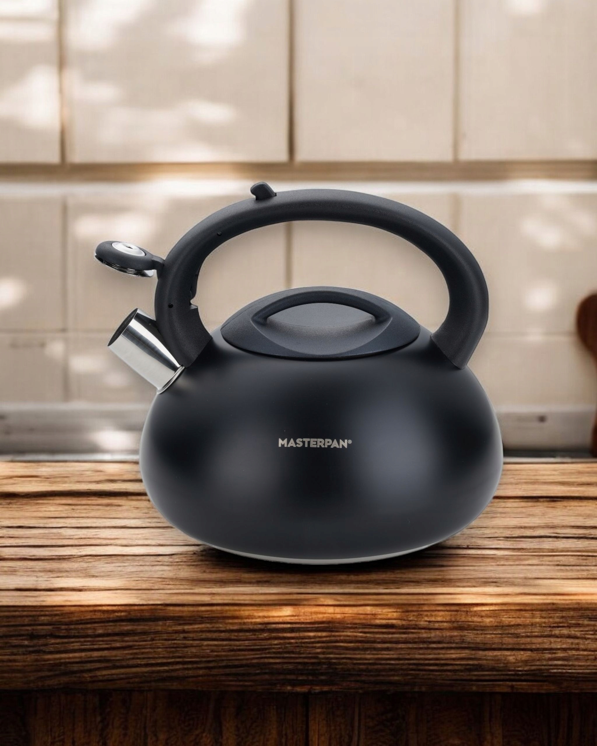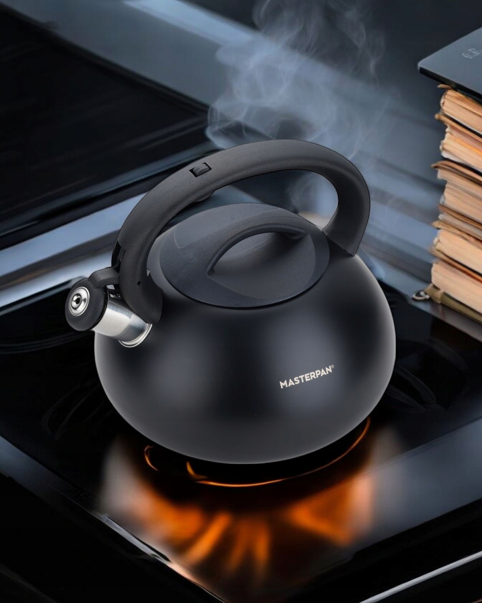 Czarny stalowy czajnik 3-litrowy z matowym wykończeniem i czarną rączką