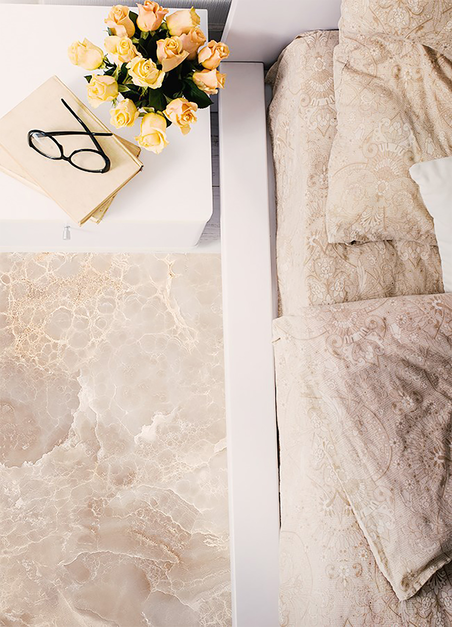 1. Pamiętaj, że kupujesz dywan winylowy z nadrukiem. Motywy takie jak np. błyszczący brokat, złoto, srebro, metal, beton, marmur, pordzewiała blacha, drewno itp. są nadrukowane, przez co mogą się różnić wyglądem od ich prawdziwych odpowiedników. Refleksy światła nie są elementami grafiki.