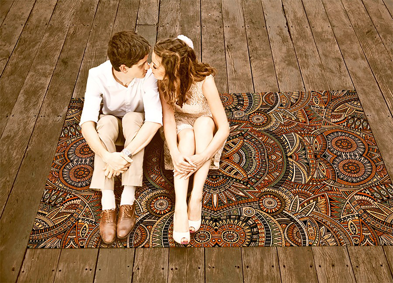 1. Pamiętaj, że kupujesz dywan winylowy z nadrukiem. Motywy takie jak np. błyszczący brokat, złoto, srebro, metal, beton, marmur, pordzewiała blacha, drewno itp. są nadrukowane, przez co mogą się różnić wyglądem od ich prawdziwych odpowiedników. Refleksy światła nie są elementami grafiki.