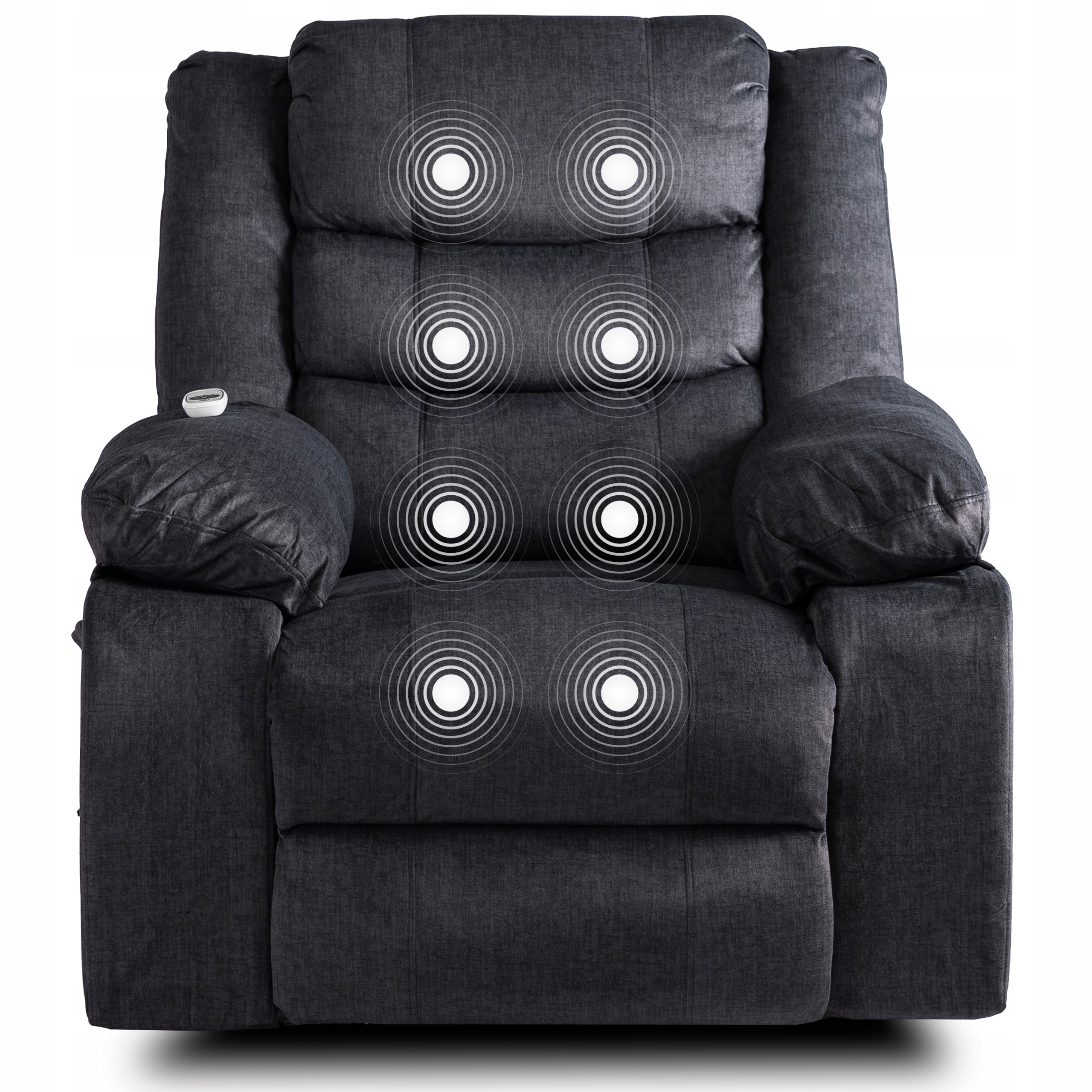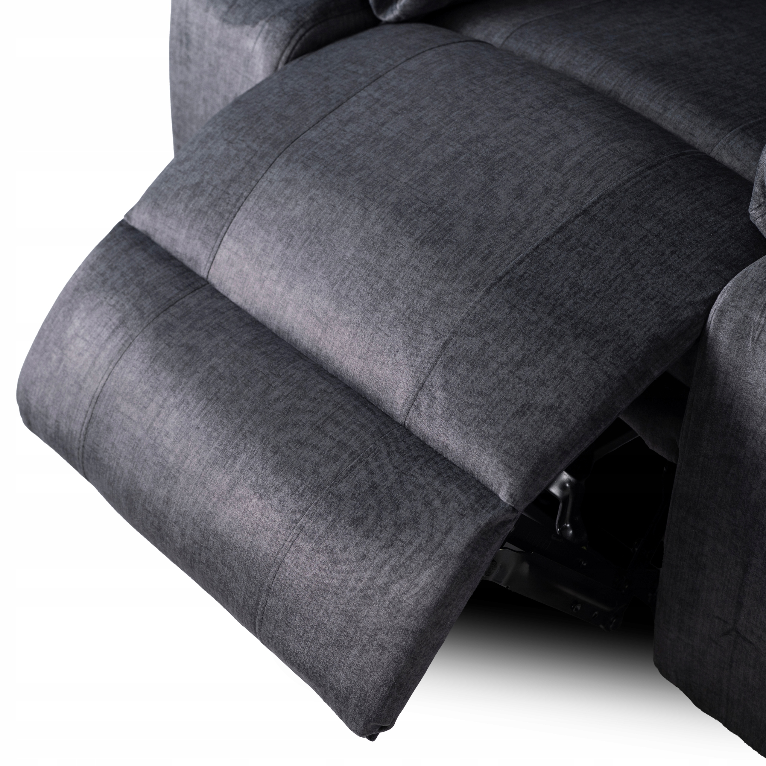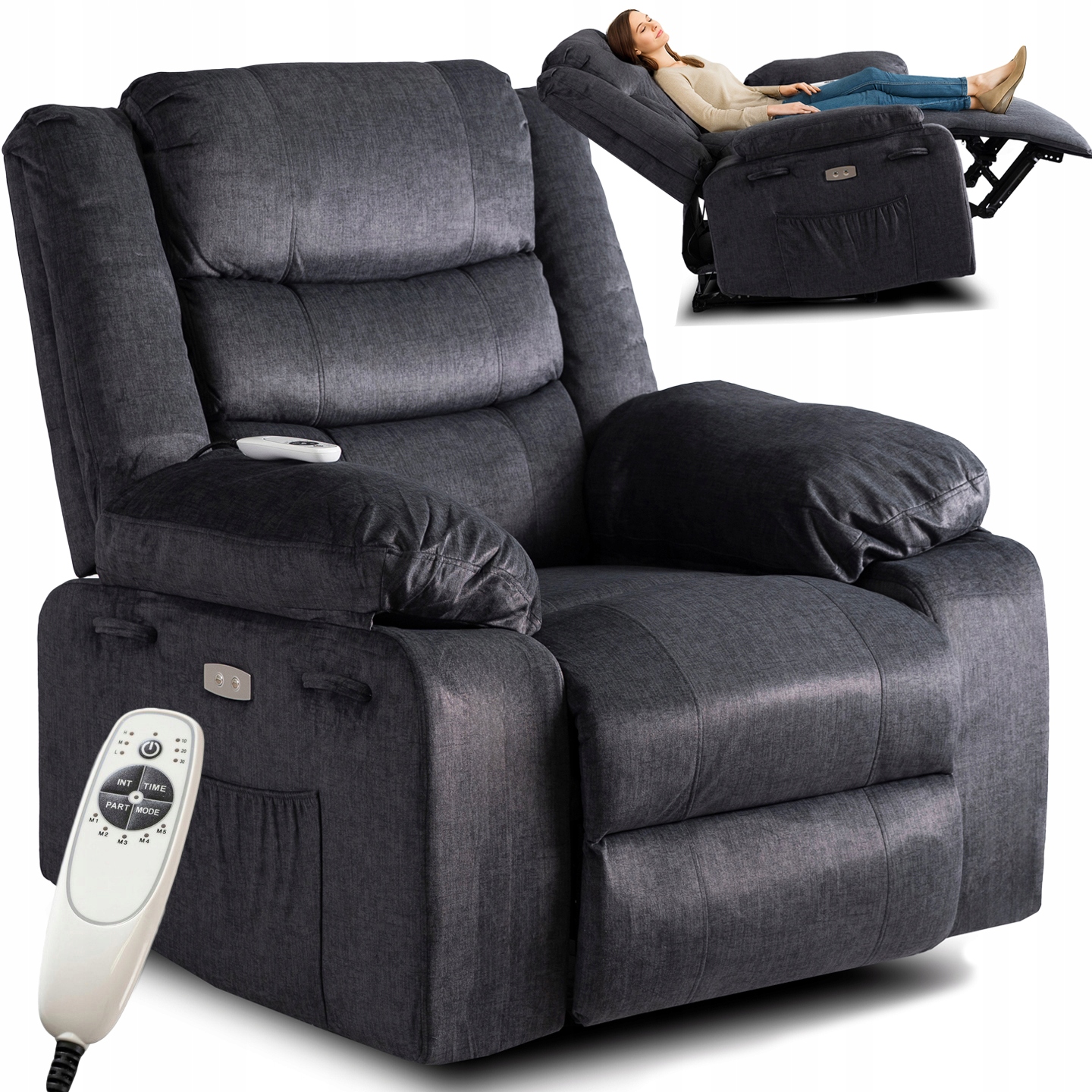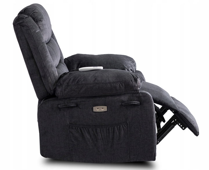 - Fotel z elektrycznym rozkładaniem oraz funkcją masażu JASPER w kolorze ciemny popiel