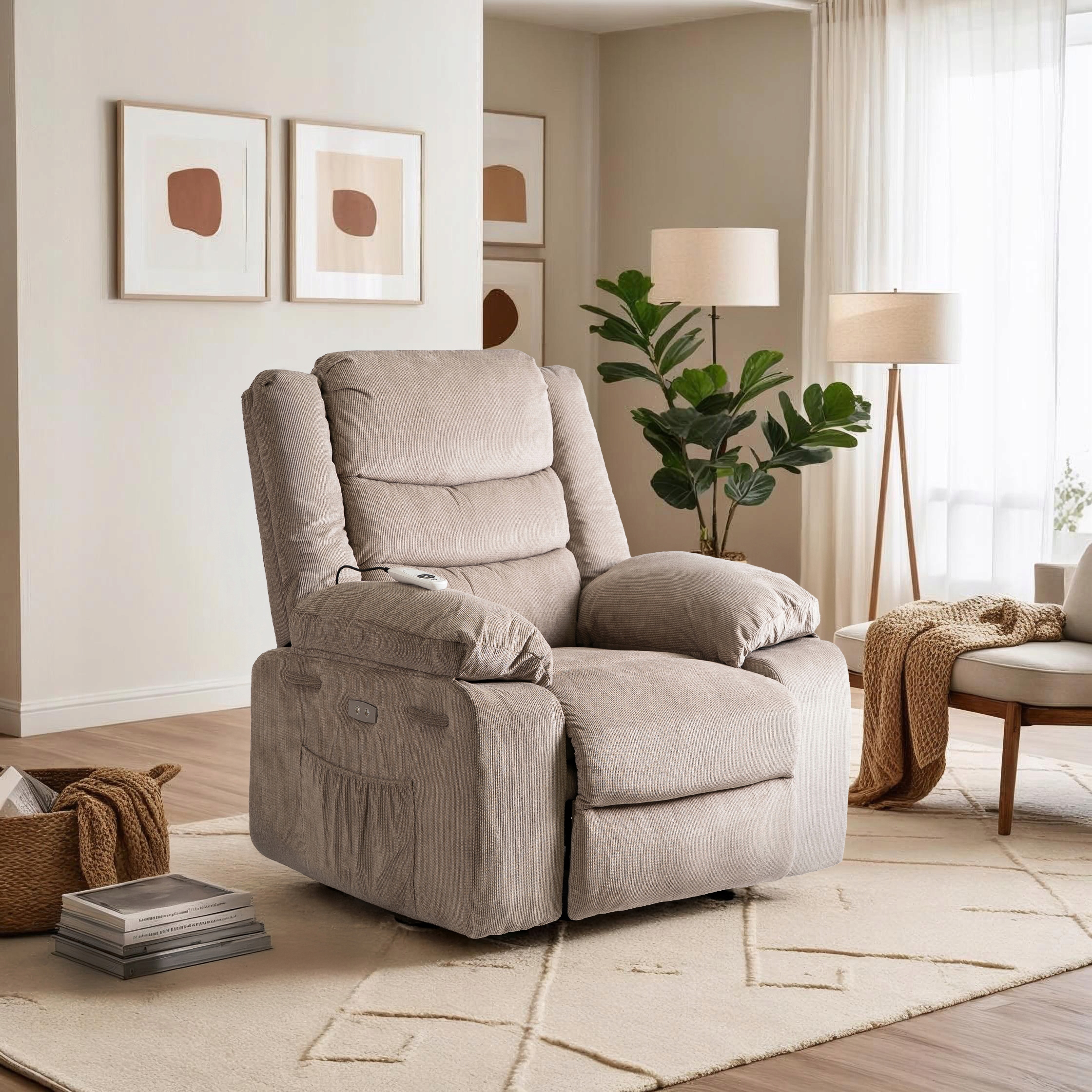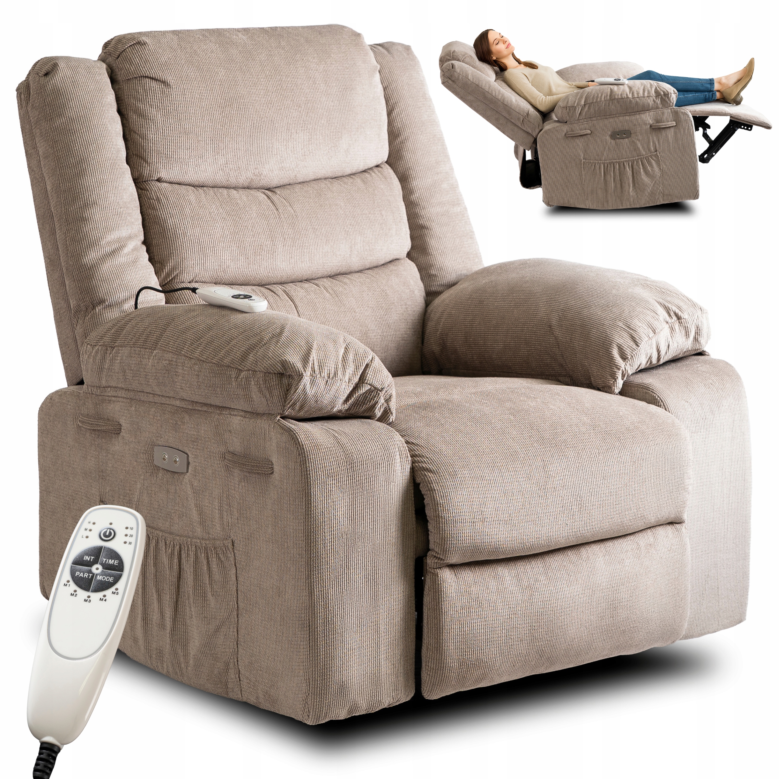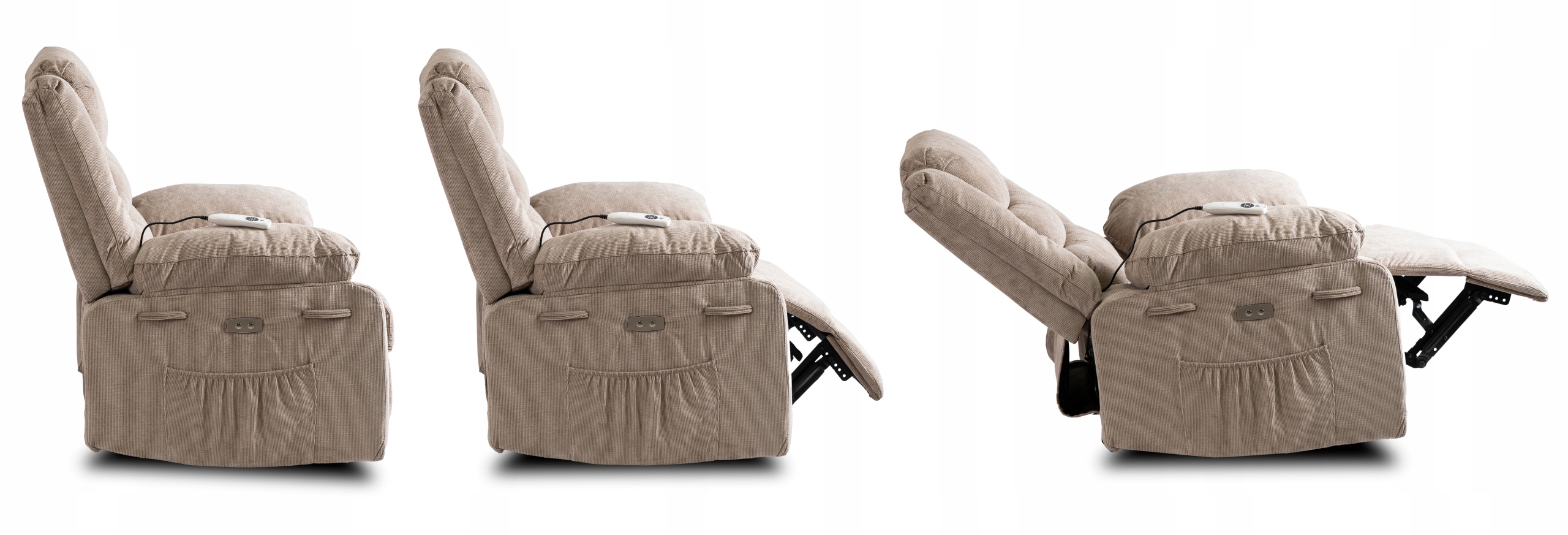 - Fotel z elektrycznym rozkładaniem oraz funkcją masażu JASPER w kolorze beżowy