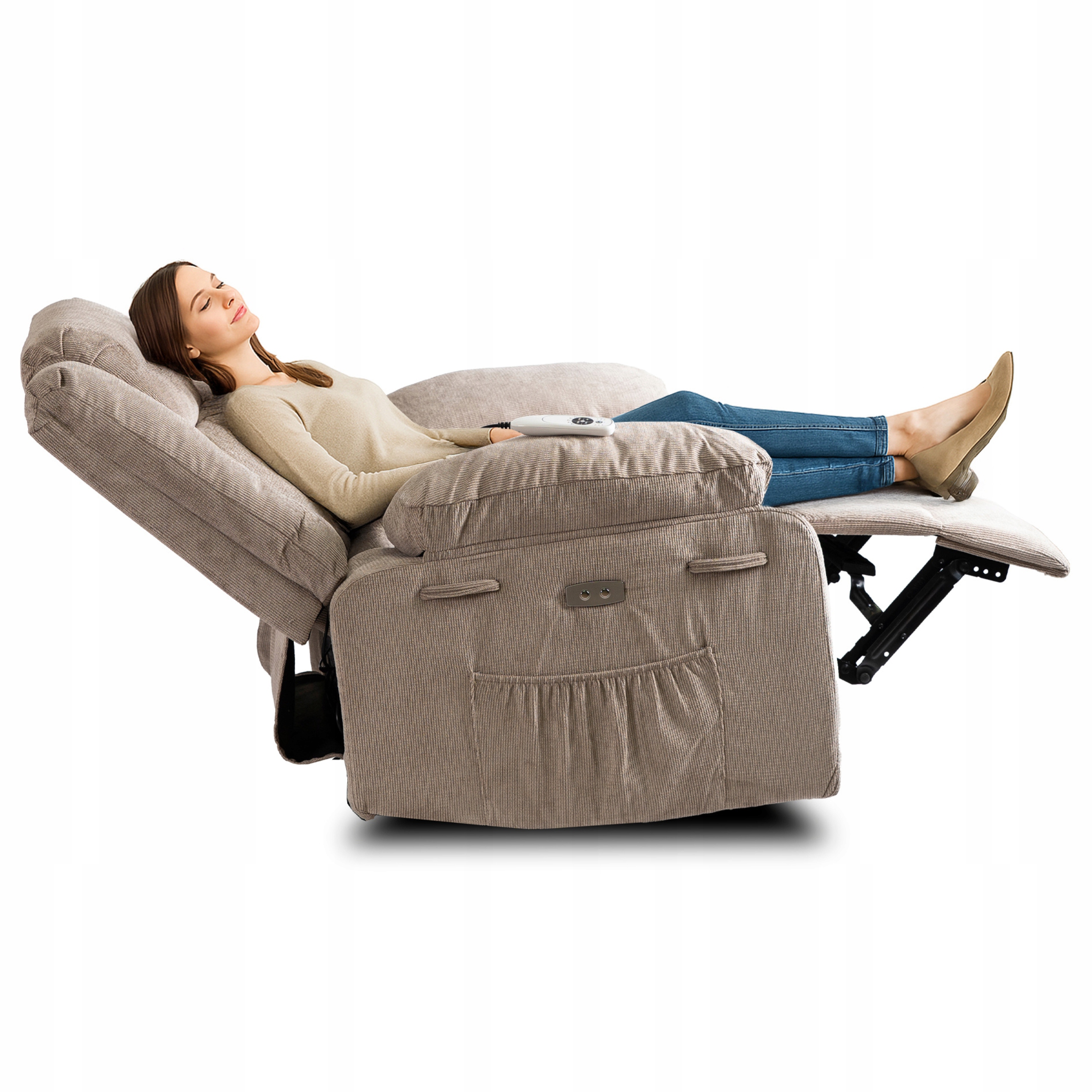 Fotel rozkładany elektrycznie to wygodny i stylowy mebel z 3 pozycjami rozłożenia, idealny do relaksu. Wykonany z wytrzymałej, miękkiej w dotyku tkaniny, świetnie sprawdza się w codziennym użytkowaniu.
