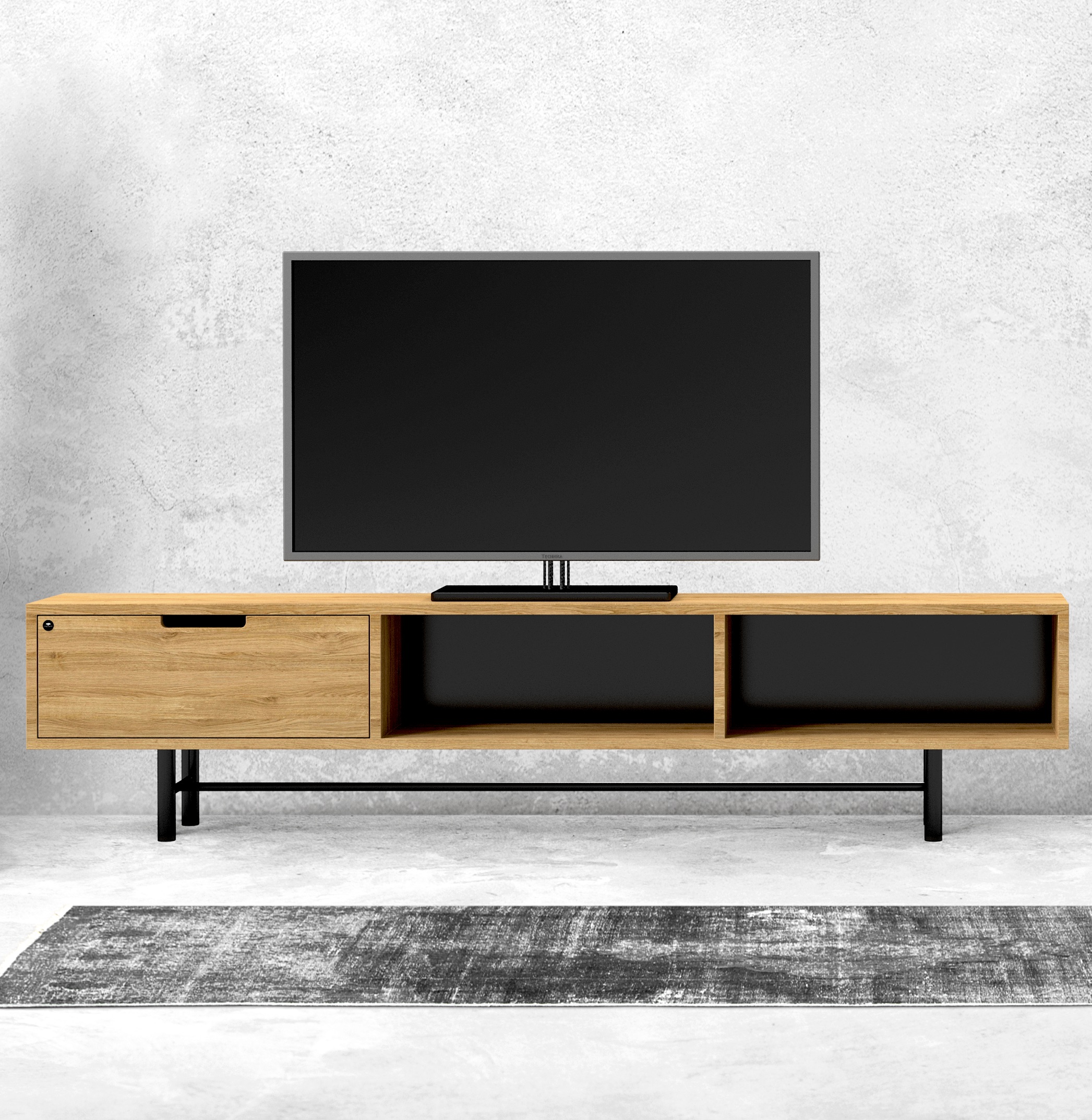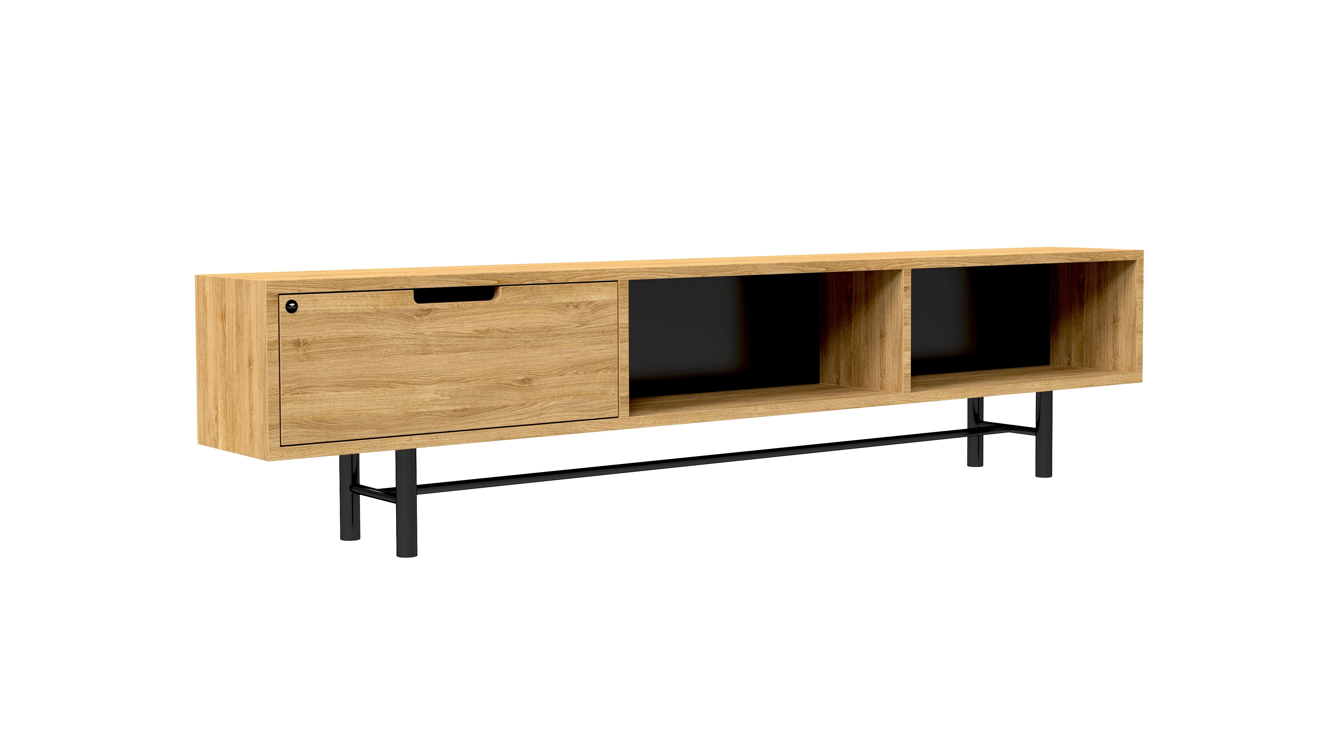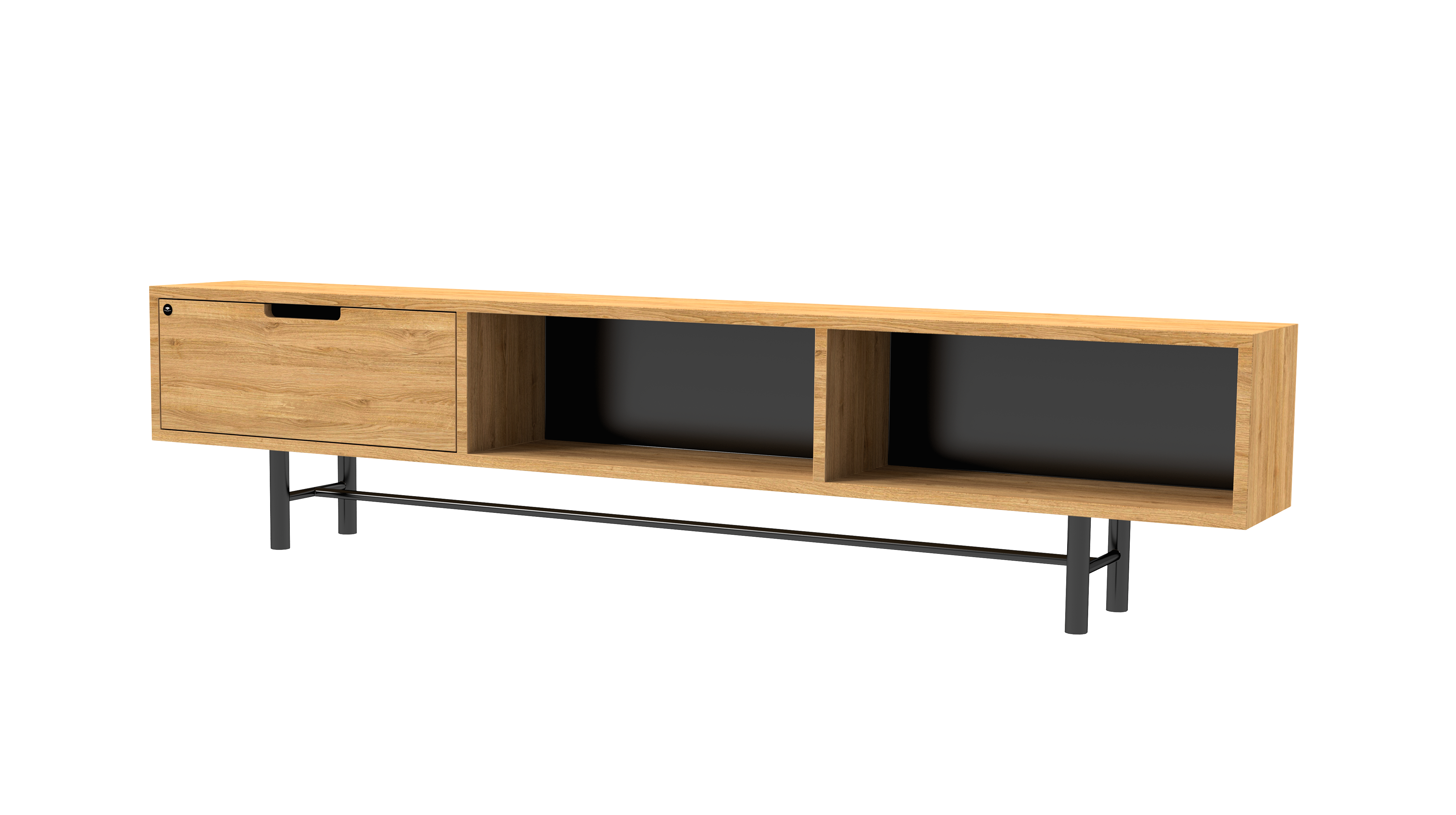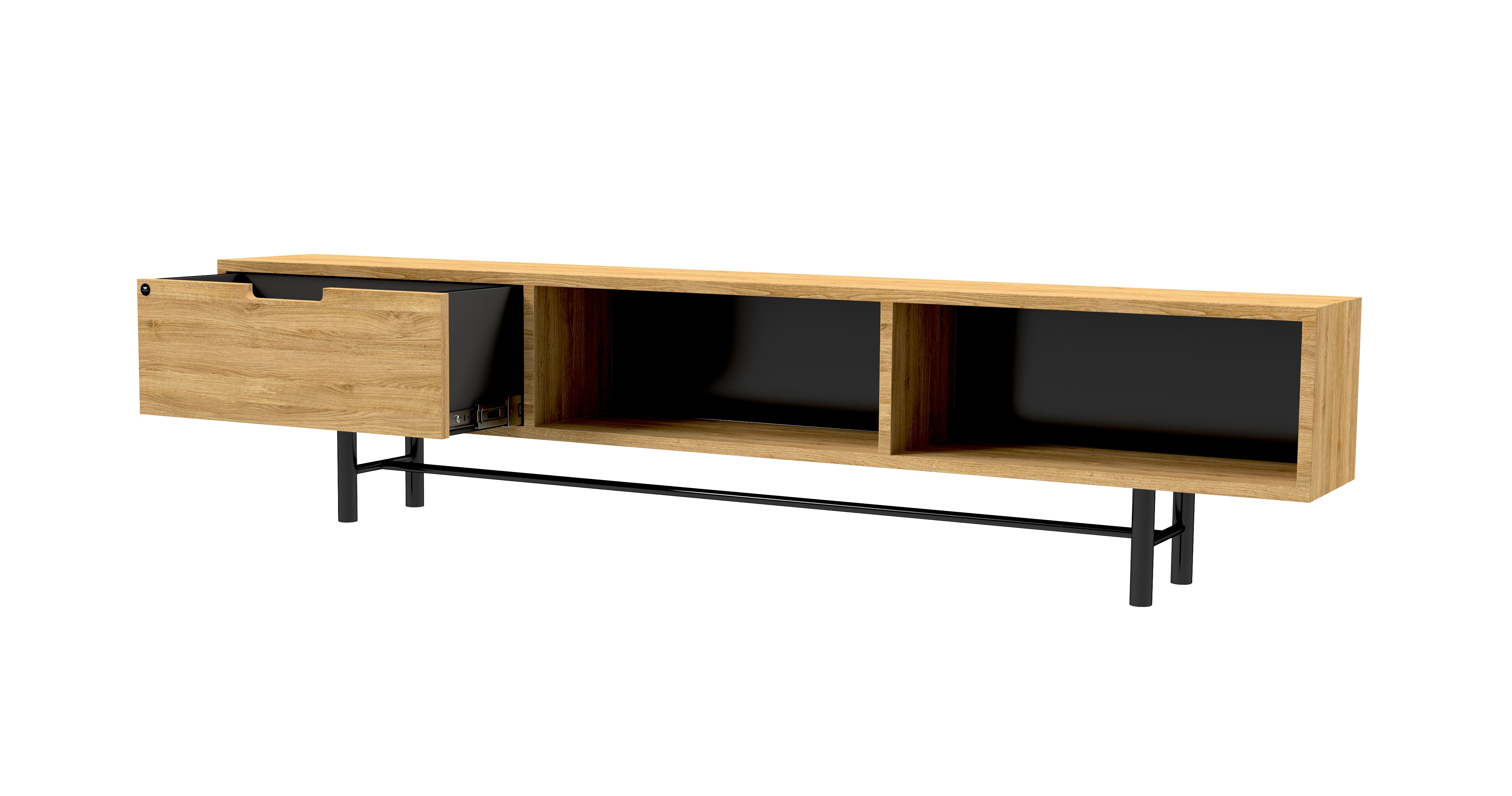 SZAFKA RTV / Gatunek Drewna DĄB LOFT / Stelaż Naturalny Lakier / Noga Metalowa Czarna / model RTV-50