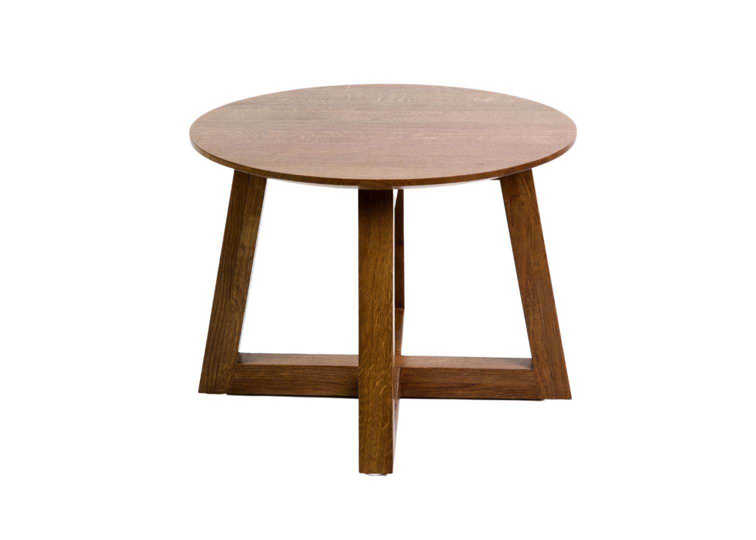 - Stelaż stolika wykonany jest z drewna litego dębowego. Układa się w ciekawą bryłę i jest również bardzo ciekawym elementem dekoracyjnym. Blat zrobiony jest z litego drewna dębowego, które jest niezwykle solidne i trwałe. Proces szczotkowania i olejowania drewna uwydatnia naturalne sęki i słoje, podkreśla strukturę naturalnego materiału.