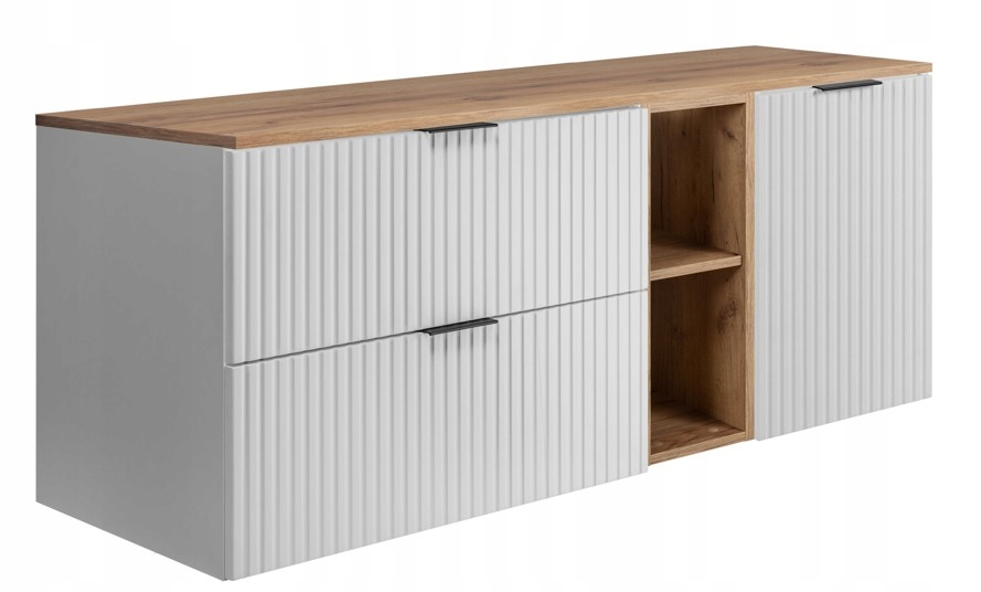 Zestaw FLOW: szafka łazienkowa 140 cm, regał i blat