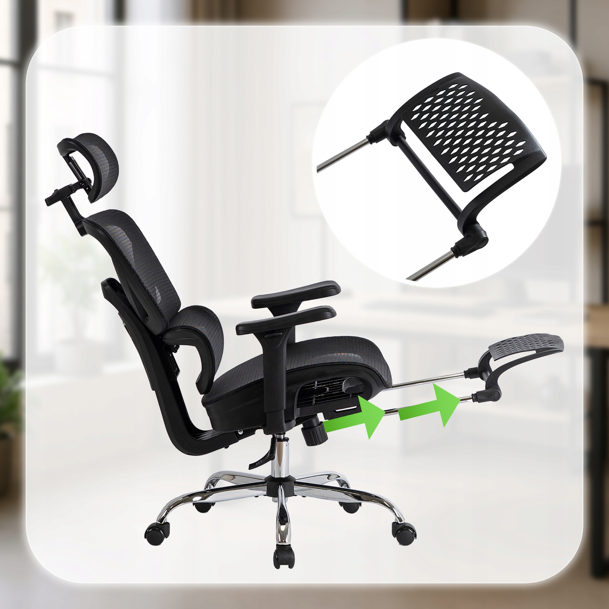 Fotel KAIR został wyposażony w praktyczny, wysuwany podnóżek, który pozwala Ci w pełni się zrelaksować w każdej chwili.