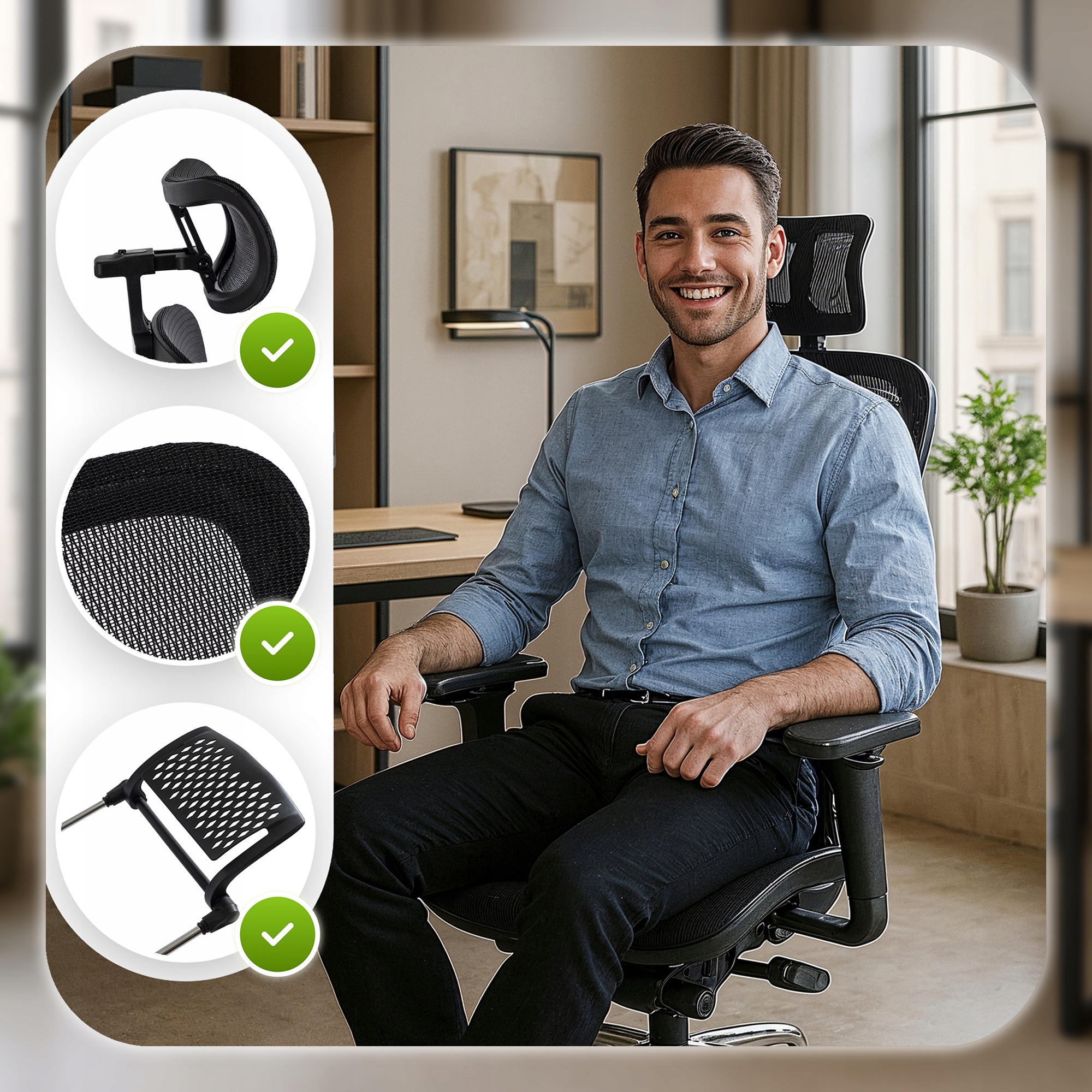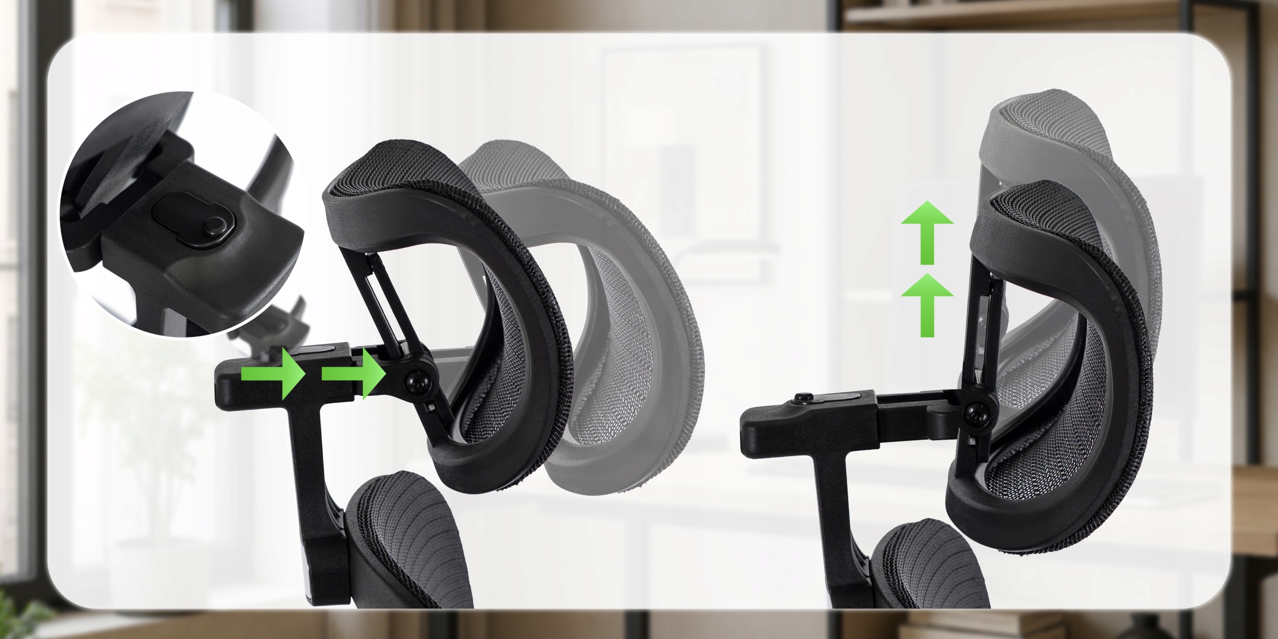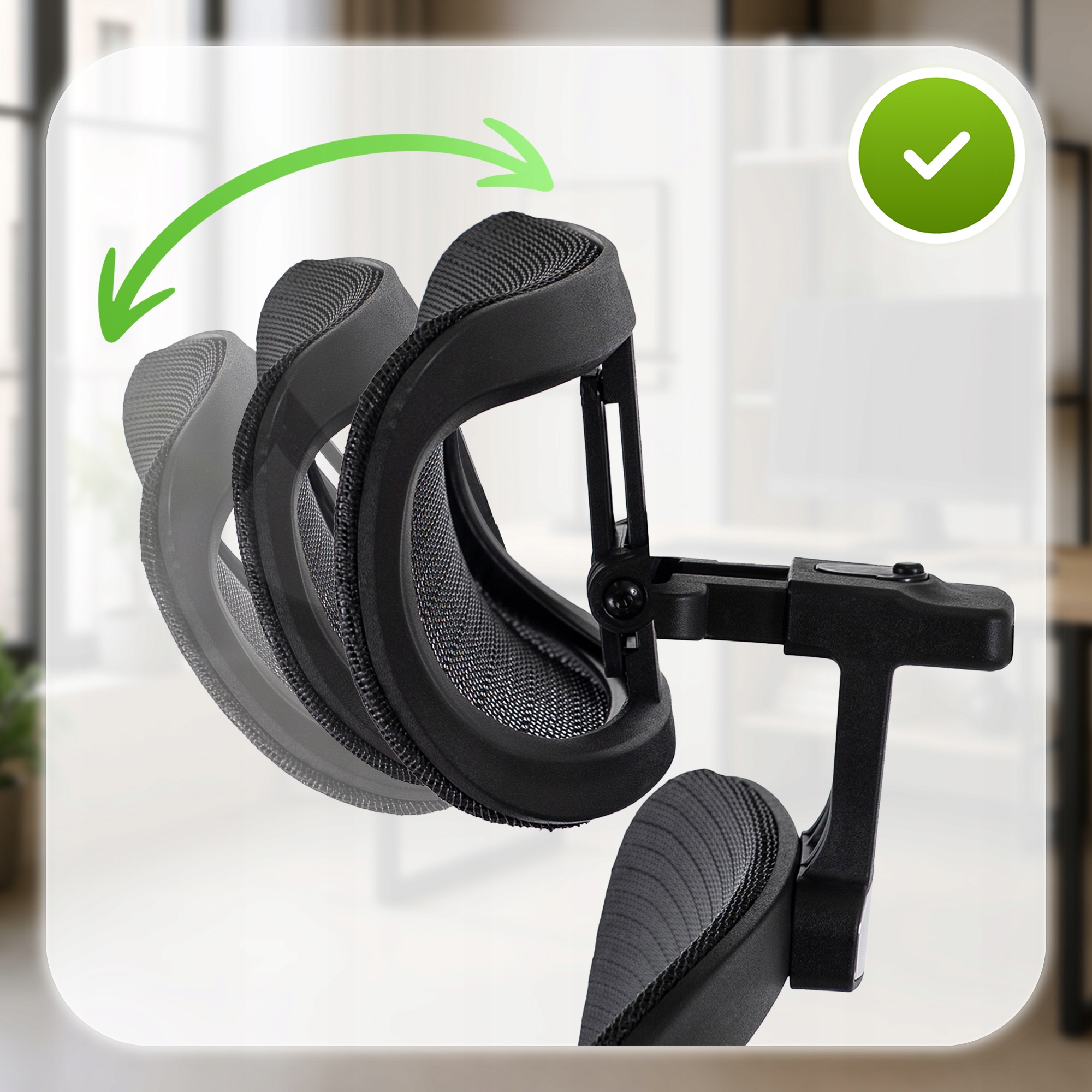 - Regulacja kąta nachylenia – nachyl zagłówek tak, jak potrzebujesz, by zachować komfort nawet podczas długiej pracy.