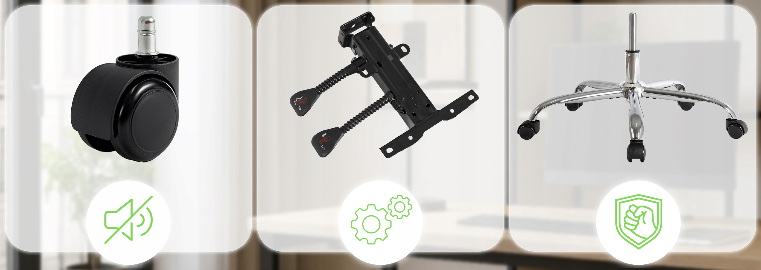 ✅ Ciche kółka – zapewniają płynne i bezgłośne przemieszczanie się po różnych powierzchniach, nie rysując podłogi.