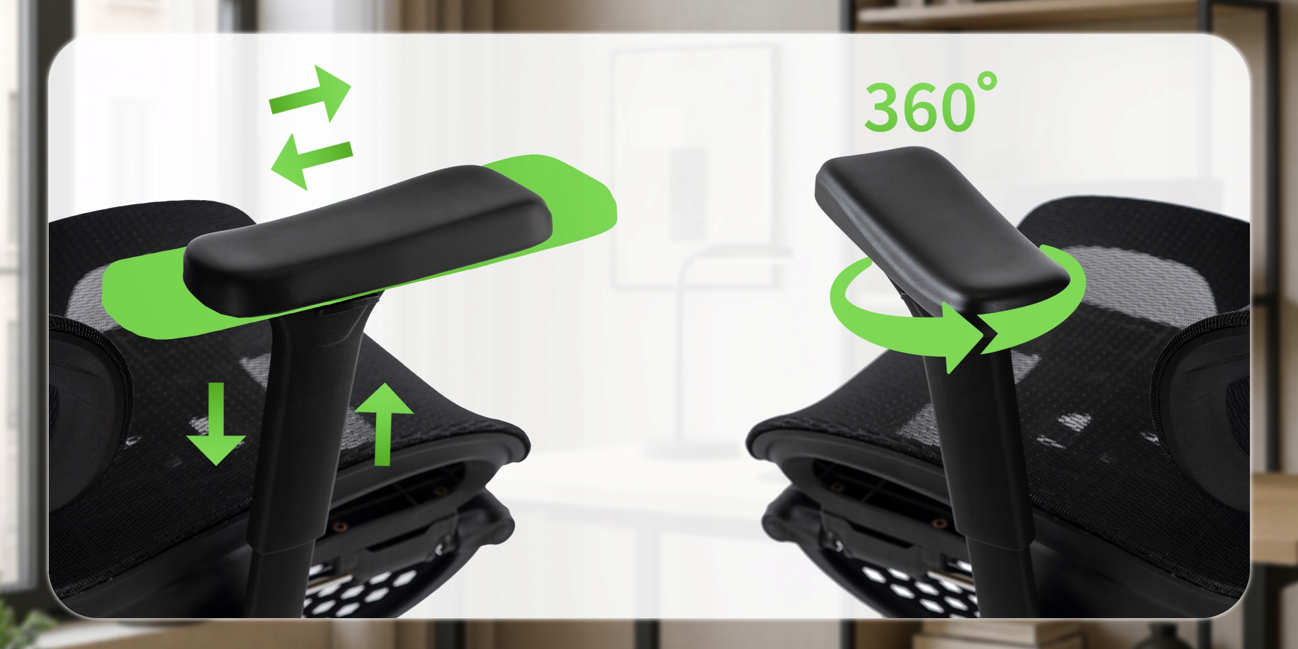 Podłokietniki 3D (góra–dół, przód–tył oraz obrót 360°) pozwolą Ci znaleźć i utrzymać idealną pozycję dla Twoich ramion, niezależnie od tego, czym się zajmujesz.