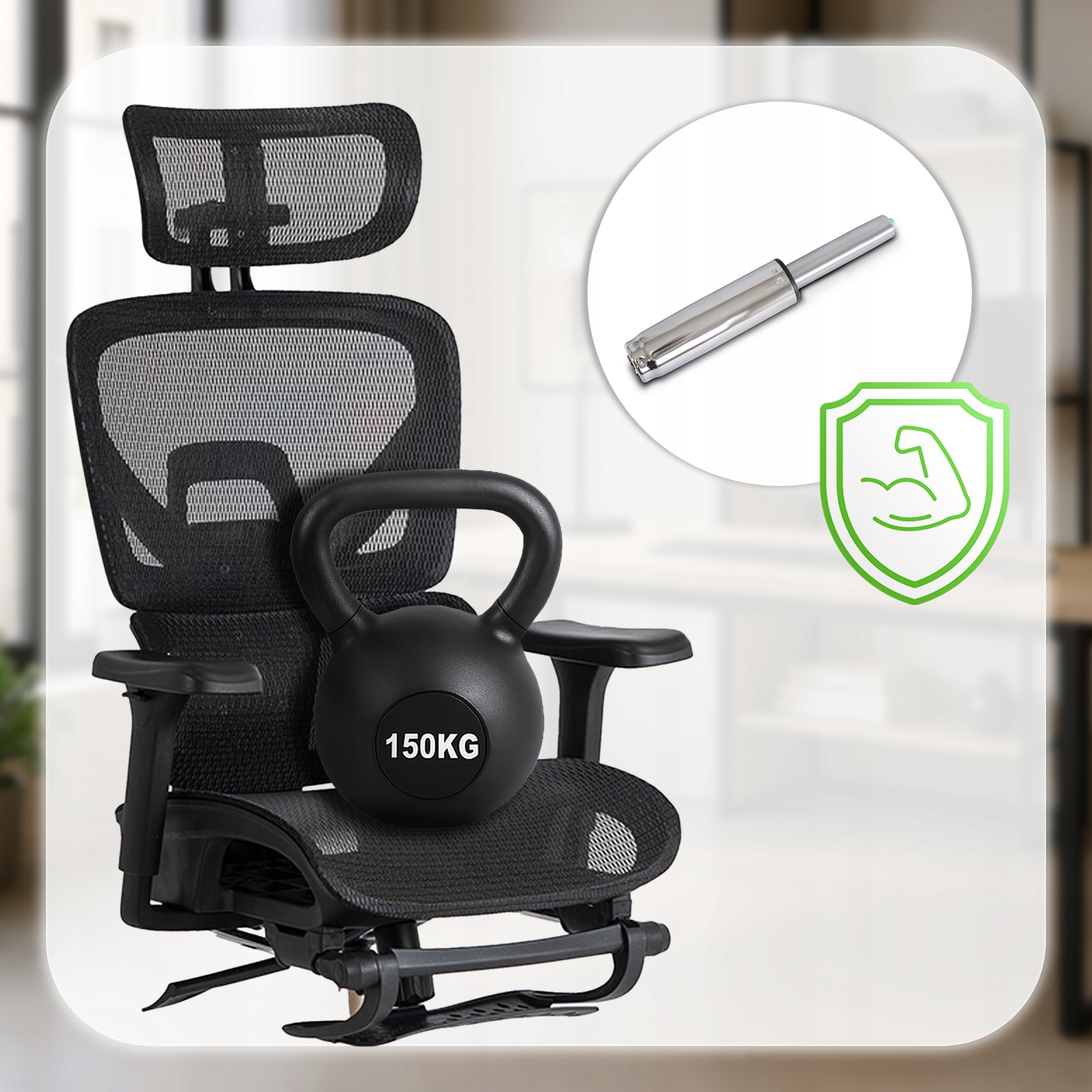 Stabilna konstrukcja oraz zastosowanie wysokiej jakości materiałów sprawiają, że krzesło bez problemu udźwignie obciążenie aż do 150 kg. Metalowy krzyżak zapewnia dodatkową stabilność i trwałość, co przekłada się na większe bezpieczeństwo i długowieczność nawet przy intensywnym użytkowaniu.