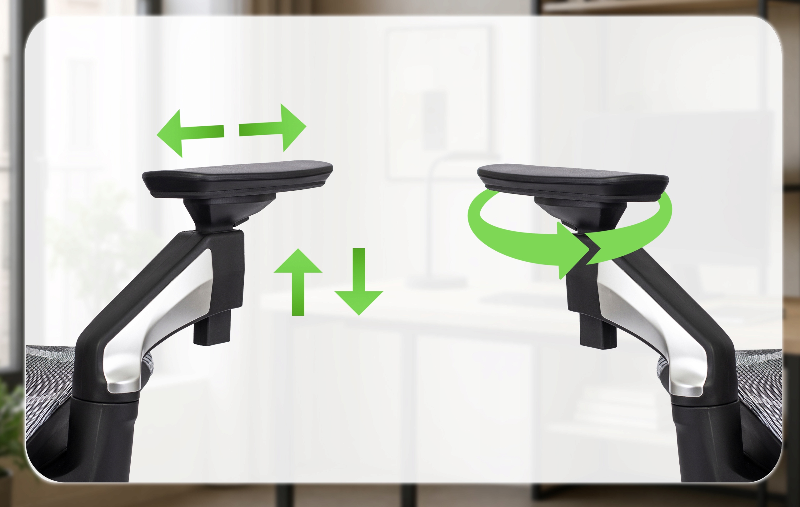 Podłokietniki 3D (góra–dół, przód–tył°) pozwolą Ci znaleźć i utrzymać idealną pozycję dla Twoich ramion, niezależnie od tego, czym się zajmujesz.