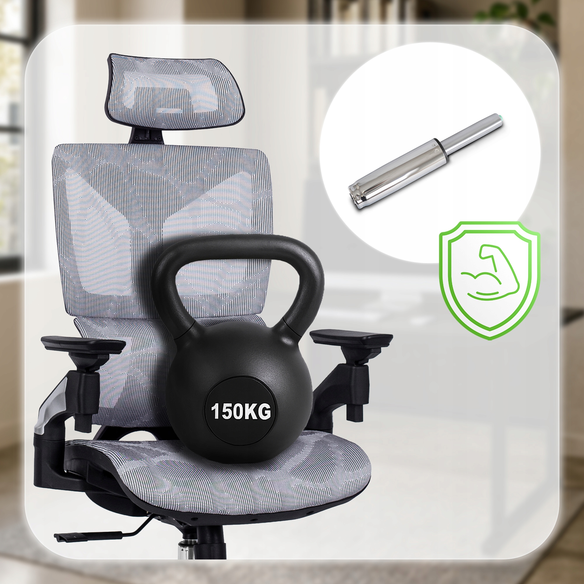 Stabilna konstrukcja oraz zastosowanie wysokiej jakości materiałów sprawiają, że krzesło bez problemu udźwignie obciążenie aż do 150 kg. Metalowy krzyżak zapewnia dodatkową stabilność i trwałość, co przekłada się na większe bezpieczeństwo i długowieczność nawet przy intensywnym użytkowaniu.