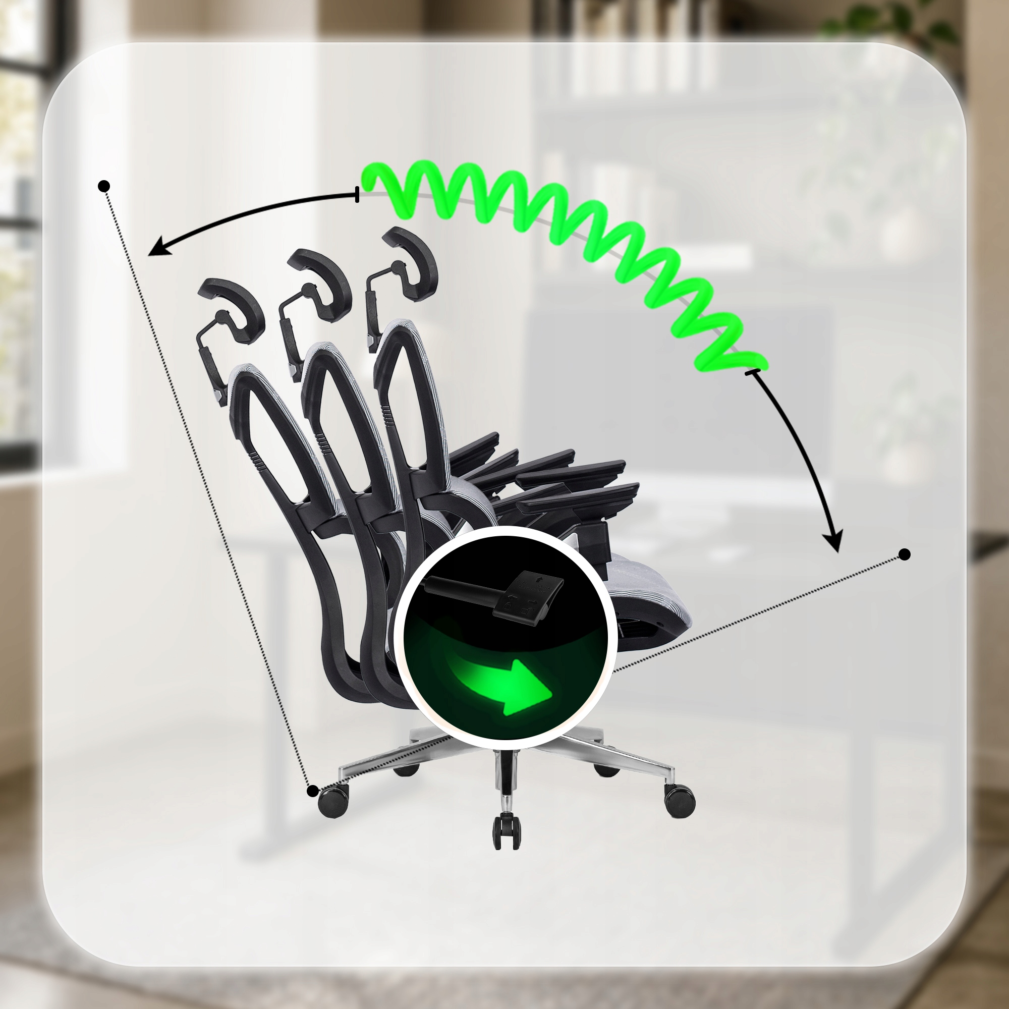 - Regulacja kąta nachylenia – nachyl zagłówek tak, jak potrzebujesz, by zachować komfort nawet podczas długiej pracy.