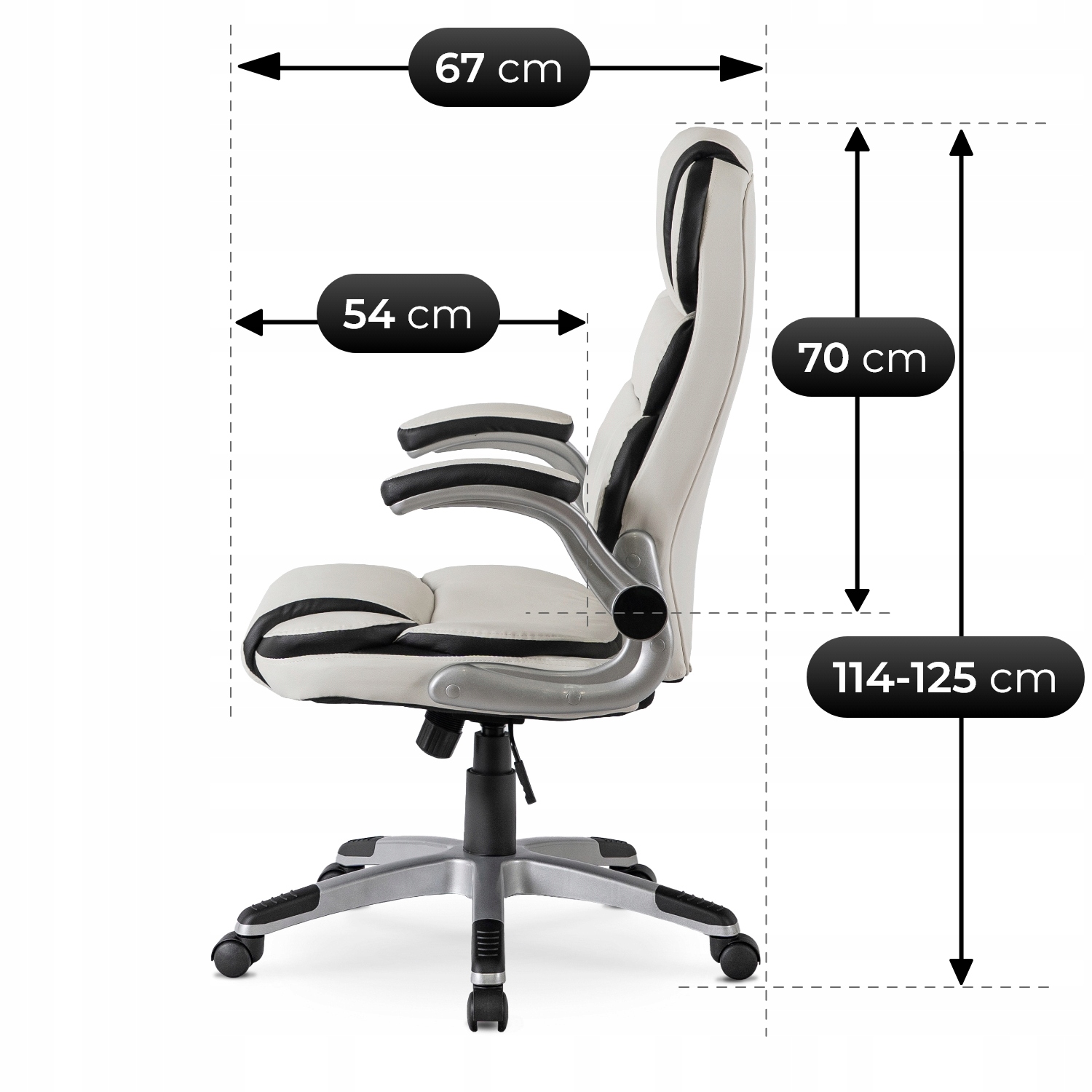 - Wysokość całkowita fotela: 114 - 125 cm