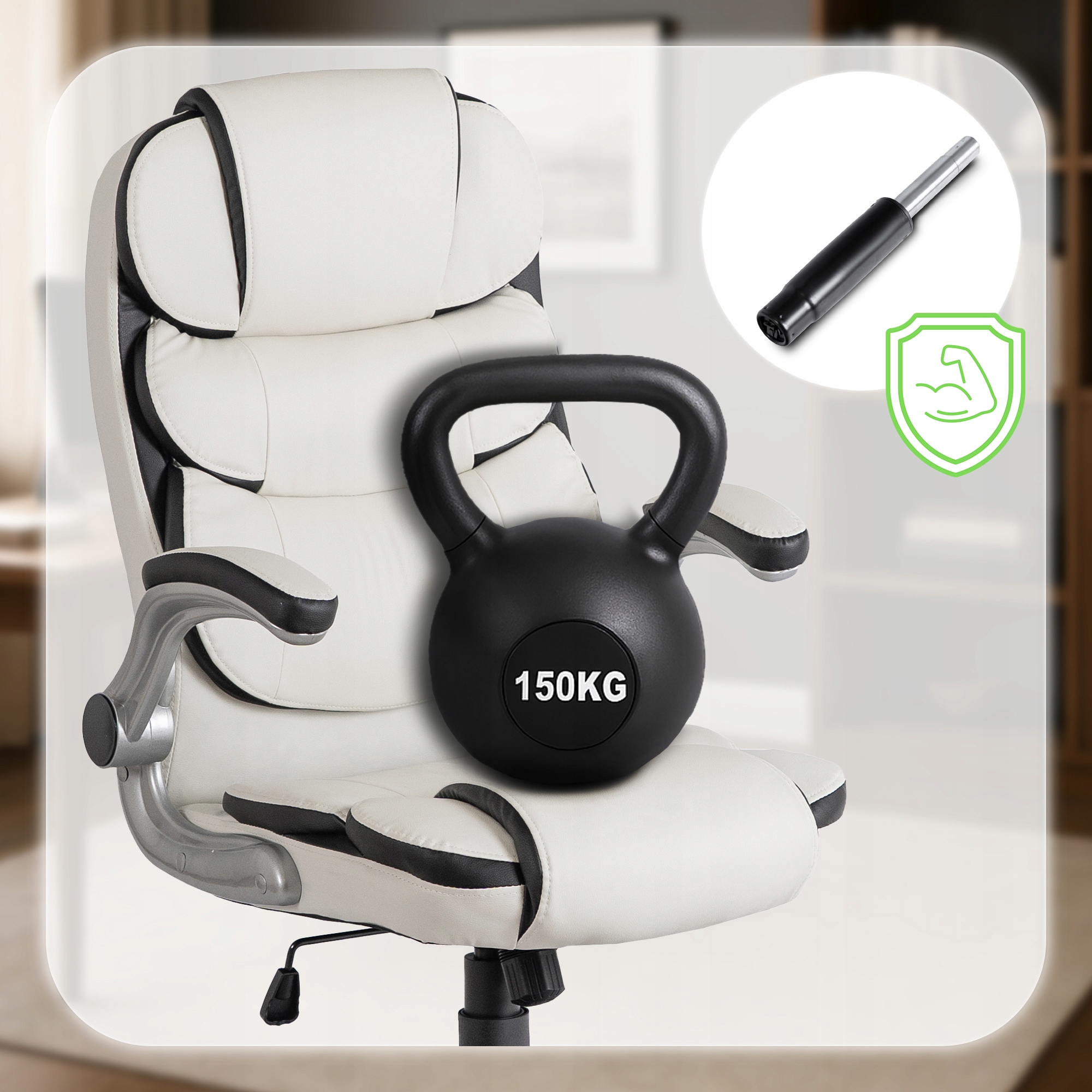 Fotel biurowy LIVERPOOL w kolorze białym to elegancja i wygoda w jednym. Wykonany z ekoskóry, jest łatwy w czyszczeniu i przyjemny w dotyku. Mechanizm TILT umożliwia bujanie i blokadę oparcia, a podnoszone podłokietniki zwiększają ergonomię. Wytrzymały krzyżak i udźwig 150 kg gwarantują stabilność i trwałość, a ciche kółka ułatwiają swobodne przemieszczanie się.