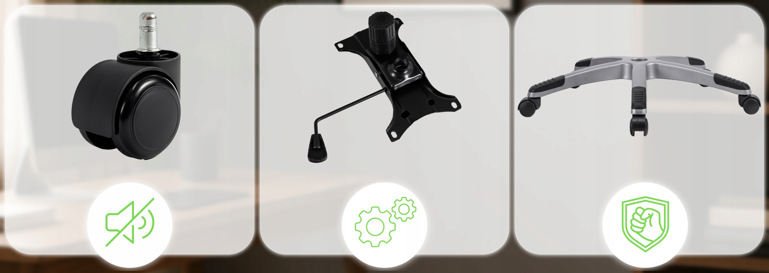 ✅ Ciche kółka – zapewniają płynne i bezgłośne przemieszczanie się po różnych powierzchniach, nie rysując podłogi.