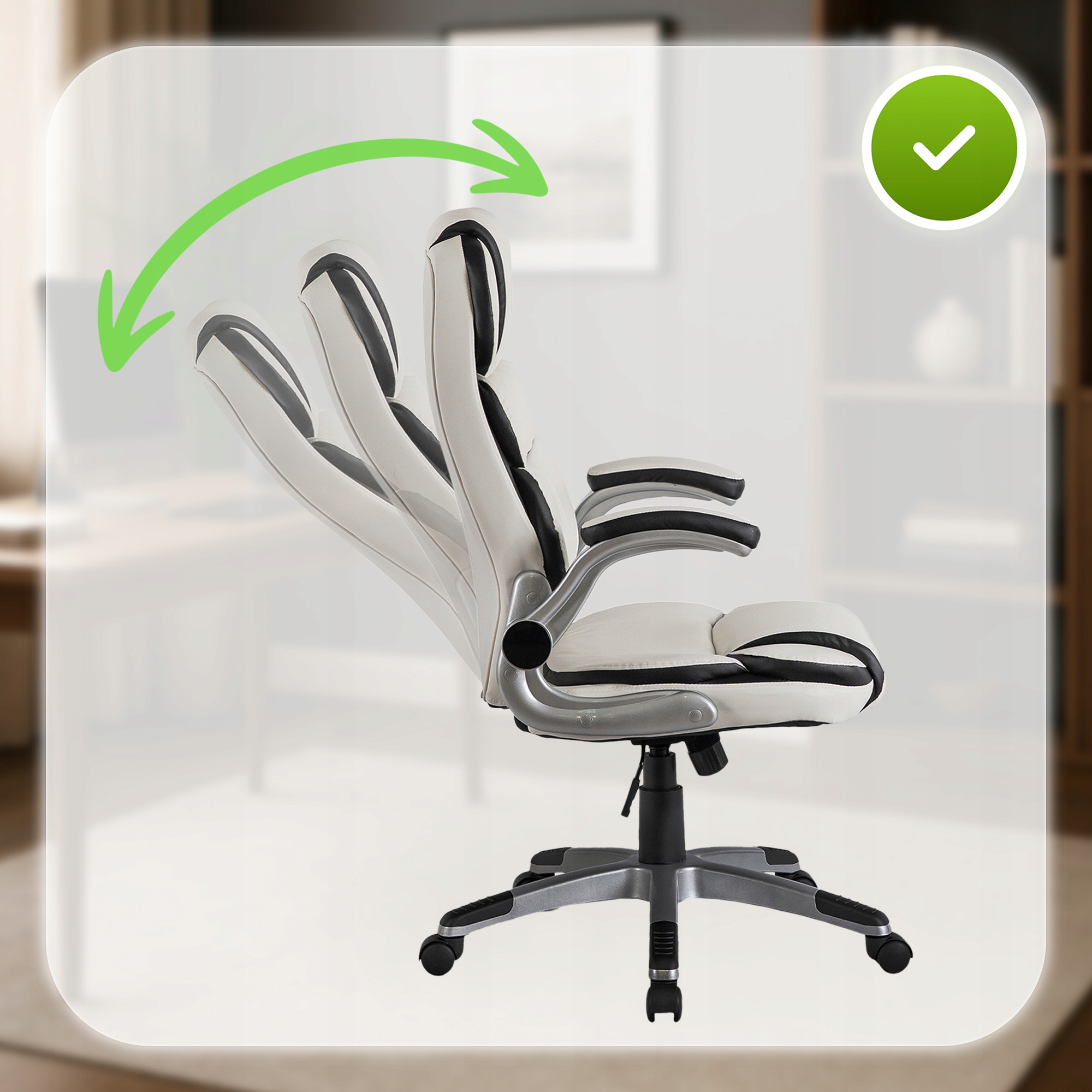 To praktyczne rozwiązanie sprawia, że fotel idealnie dopasowuje się do Twoich potrzeb zarówno w pracy, jak i w domowym biurze.