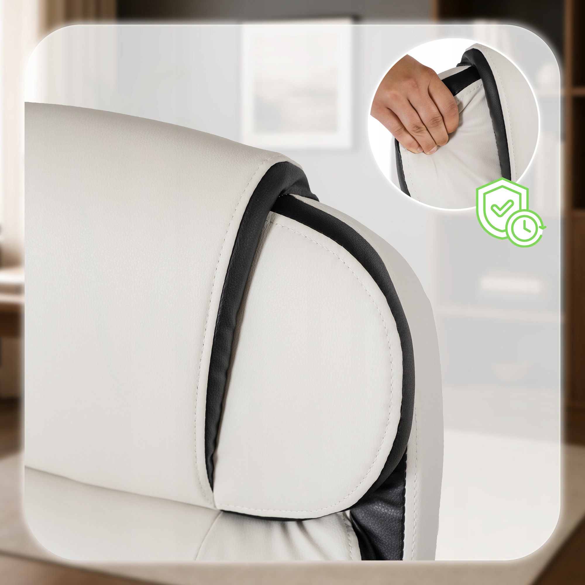 Pokryte miękką ekoskórą, są przyjemne w dotyku i trwałe, dzięki czemu zachowują swój kształt i estetykę przez długi czas.