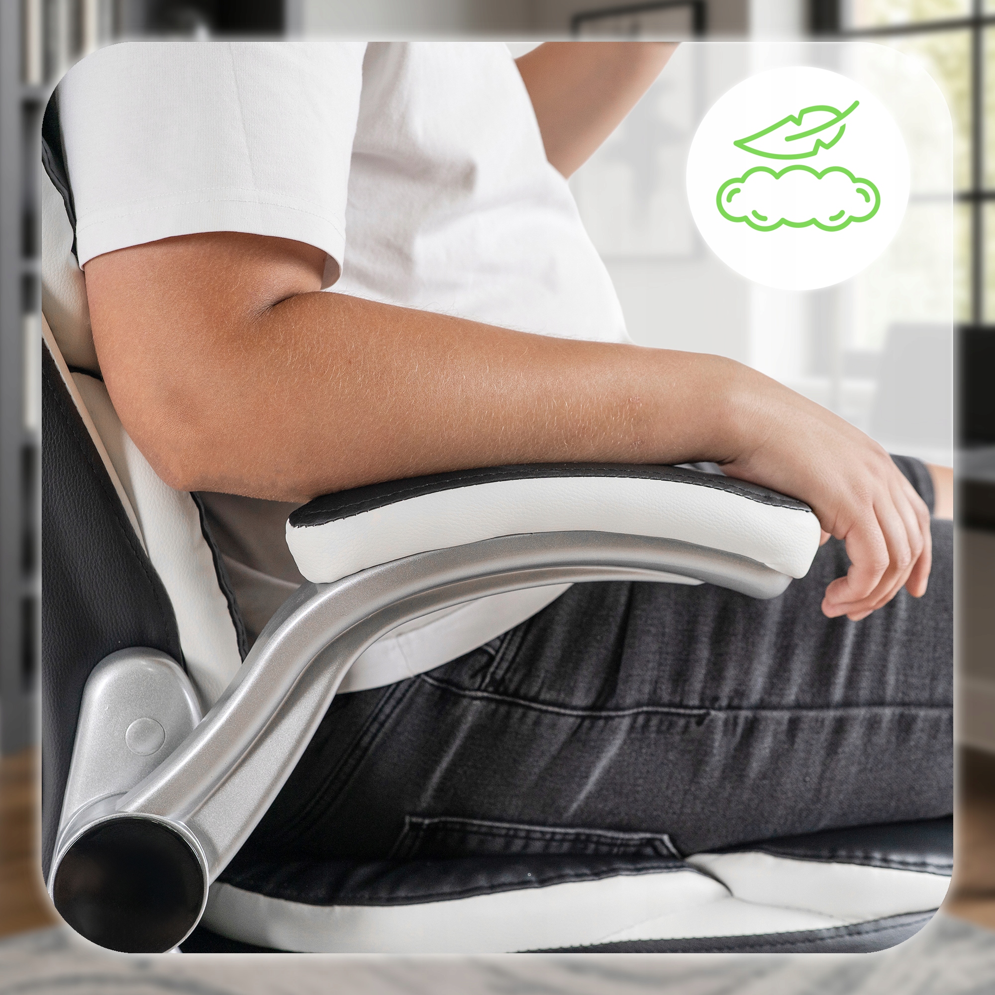 Grubo wyściełane i ergonomicznie ukształtowane podłokietniki fotela LIVERPOOL zapewniają wygodne podparcie rąk podczas pracy, nauki czy relaksu.