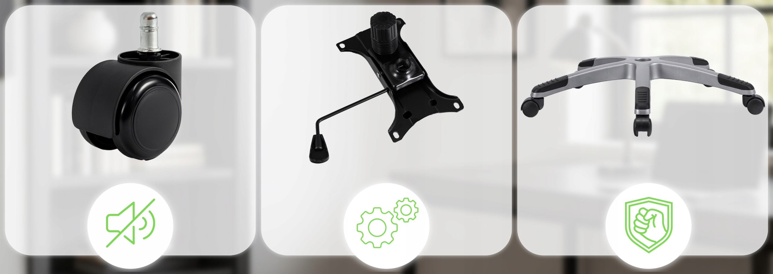 ✅ Ciche kółka – zapewniają płynne i bezgłośne przemieszczanie się po różnych powierzchniach, nie rysując podłogi.