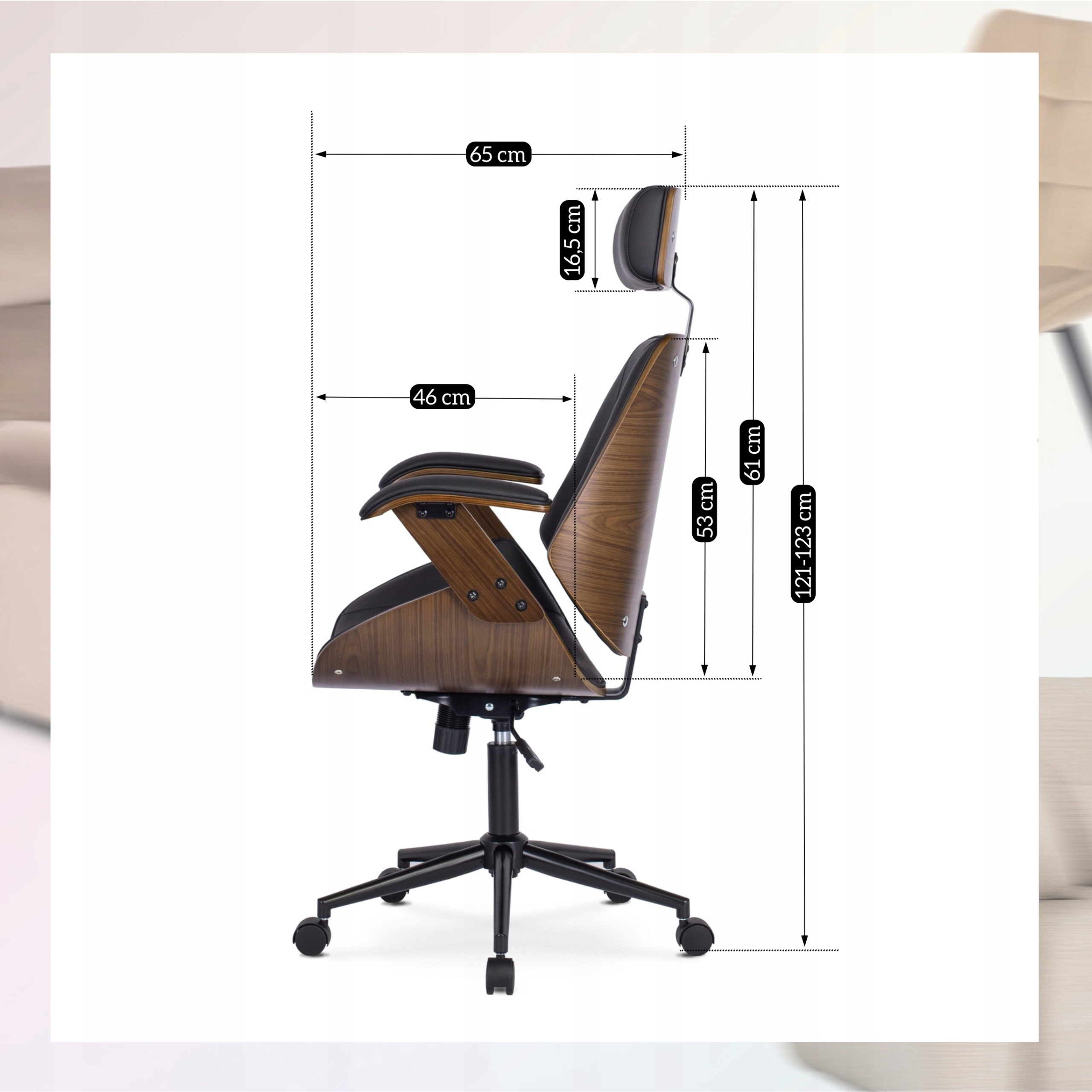 Fotel Biurowy Obrotowy Skórzany Krzesło Do Biurka Komputera Orzech FABIAN ⭐⭐⭐⭐⭐