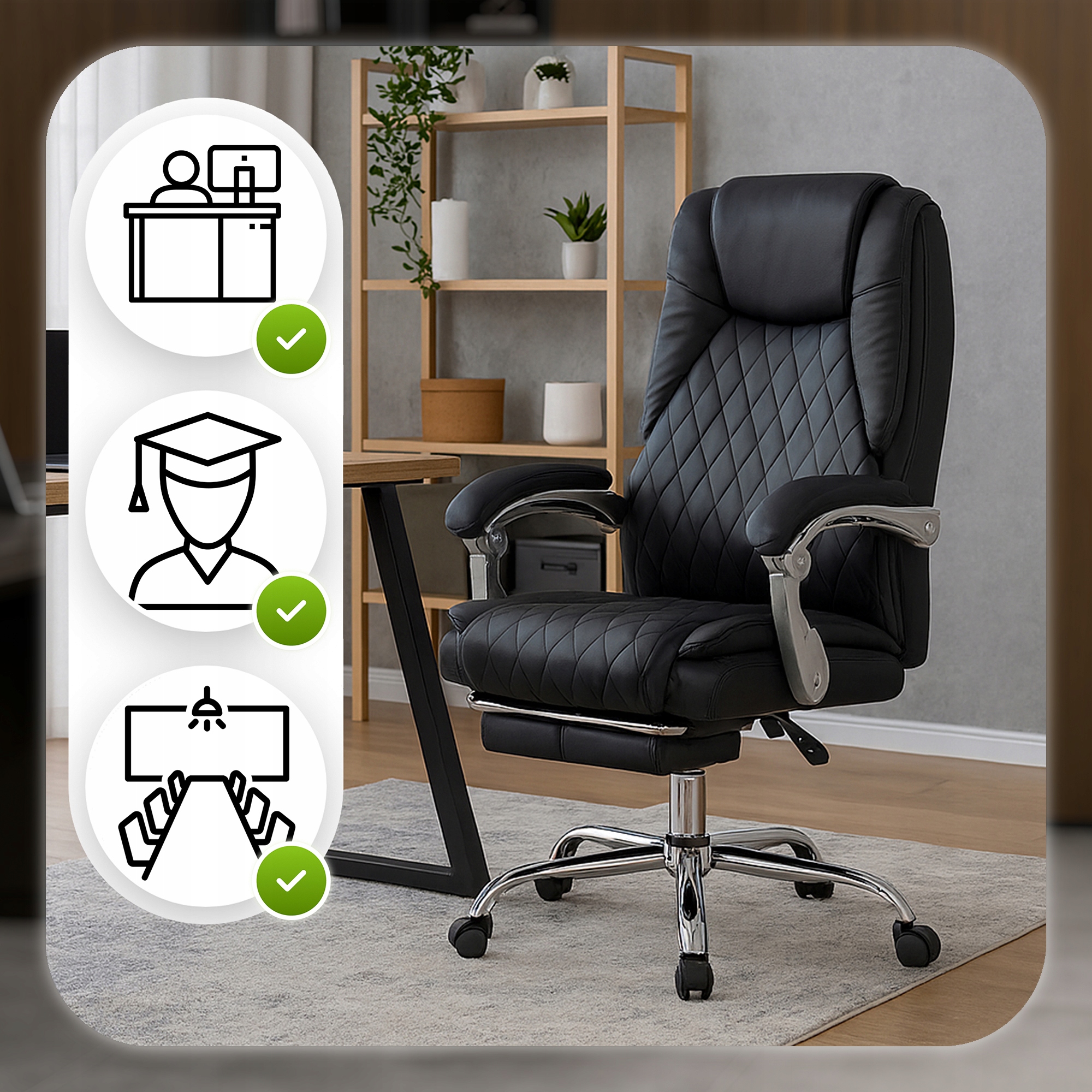 - W biurze – jako elegancki i wygodny element stanowiska pracy, który podnosi komfort podczas wielogodzinnego siedzenia.