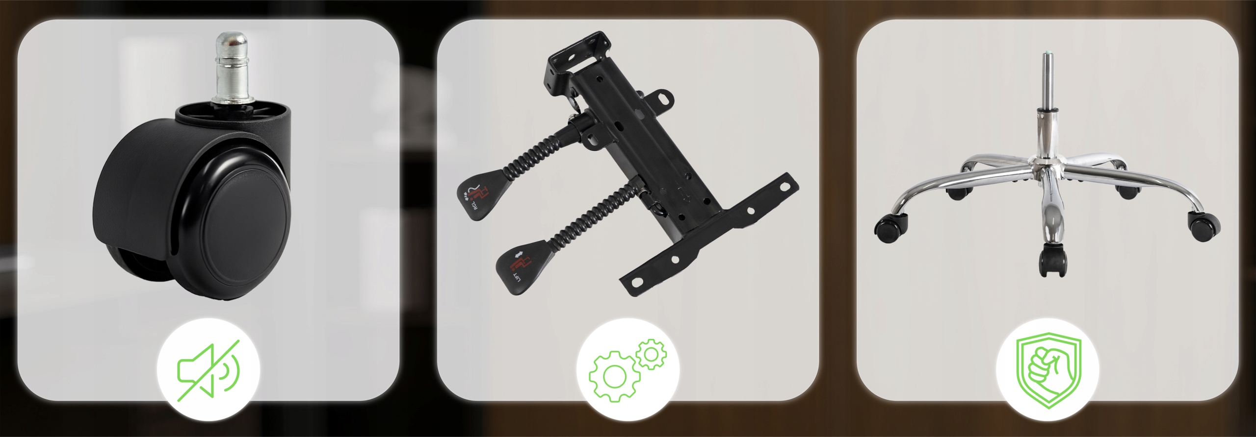 ✅ Wytrzymały mechanizm regulacji – umożliwia łatwe dostosowanie wysokości, blokadę oparcia oraz ustawienie fotela pod Twoje potrzeby, gwarantując komfort na co dzień.