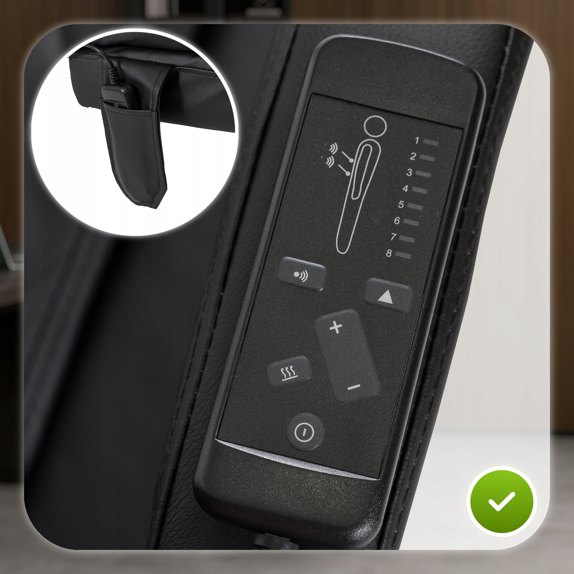 Sterowanie funkcjami fotela powinno być szybkie i intuicyjne – dlatego fotel GIORGIO wyposażono w praktyczny pilot, dzięki któremu włączysz masaż, dopasujesz jego intensywność oraz uruchomisz funkcję grzania jednym kliknięciem.