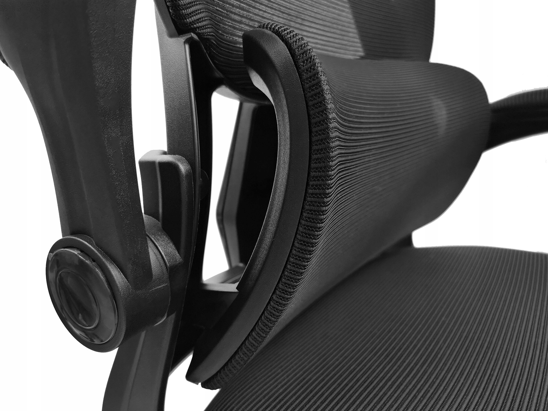 Fotel został wyposażony w funkcję regulacji wysokości siedziska oraz składanych podłokietników, co gwarantuje osiągnięcie najwyższego poziomu komfortu. Opcja ta przynosi liczne korzyści, w tym poprawę postawy oraz zwiększoną zdolność skupienia. Dzięki starannie zaprojektowanemu kształtowi oparcia, krzesło zapewnia także solidne wsparcie dla kręgosłupa. Co więcej, możliwość regulacji wysokości zagłówka oraz kąta nachylenia pomaga zmniejszyć obciążenie szyi i pleców.