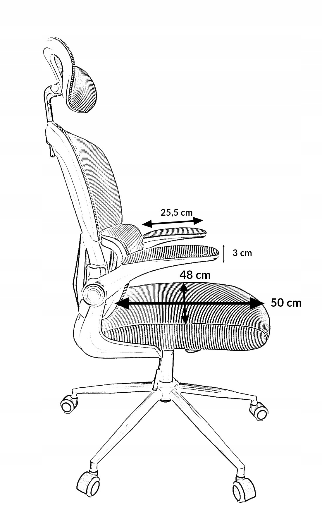 Fotel został wyposażony w funkcję regulacji wysokości siedziska oraz składanych podłokietników, co gwarantuje osiągnięcie najwyższego poziomu komfortu. Opcja ta przynosi liczne korzyści, w tym poprawę postawy oraz zwiększoną zdolność skupienia. Dzięki starannie zaprojektowanemu kształtowi oparcia, krzesło zapewnia także solidne wsparcie dla kręgosłupa. Co więcej, możliwość regulacji wysokości zagłówka oraz kąta nachylenia pomaga zmniejszyć obciążenie szyi i pleców.