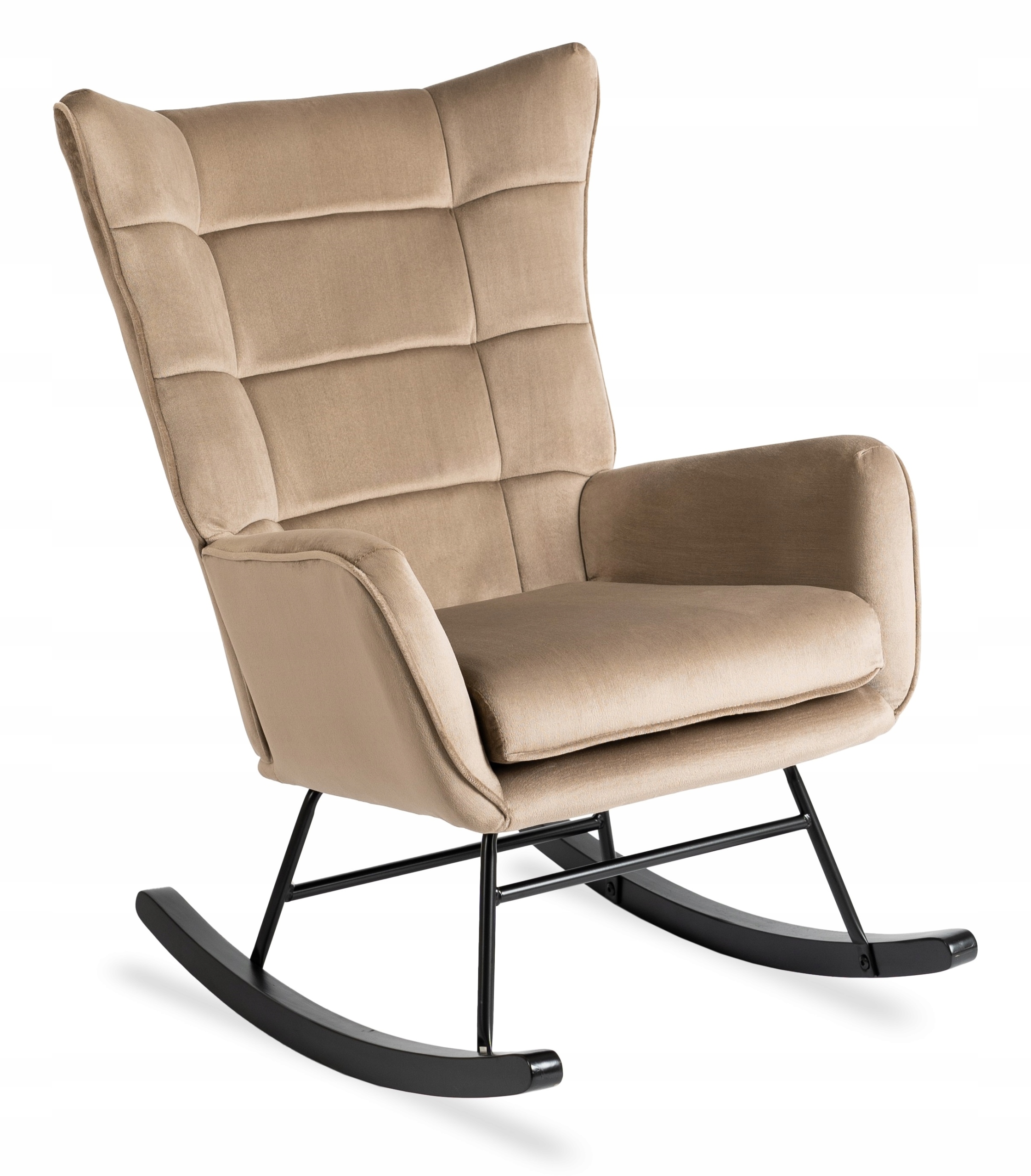 Fotel Bujany Na Biegunach Wypoczynkowy Welurowy Salon Loft Beżowy JACKSON ⭐⭐⭐⭐⭐
